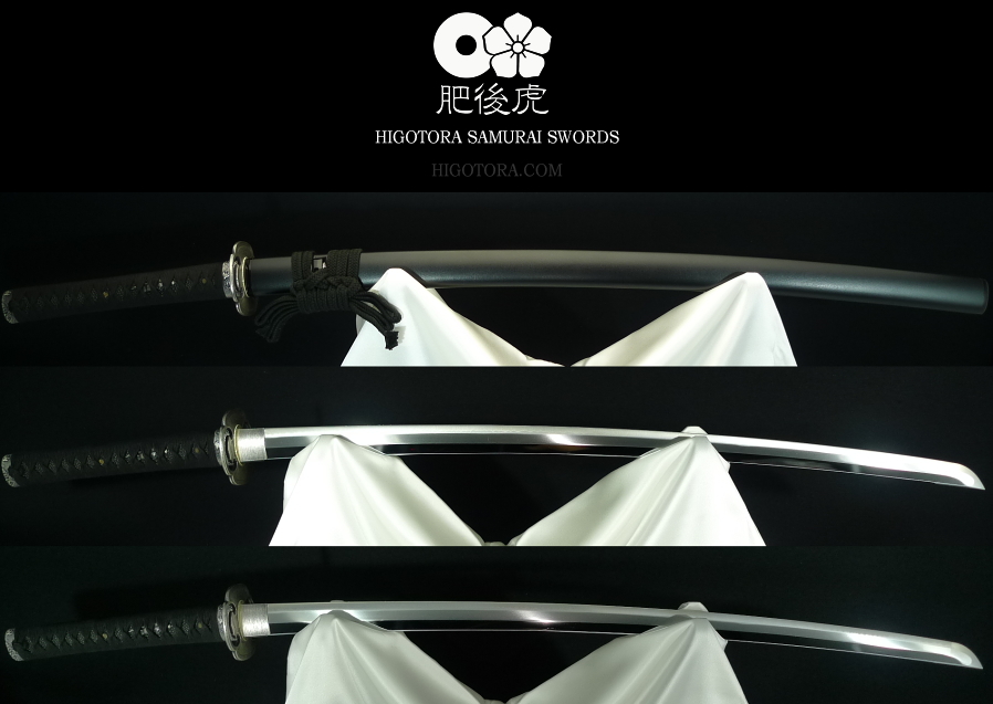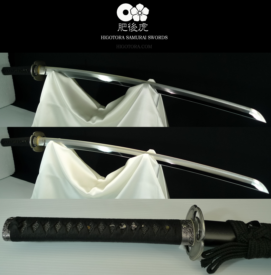 樋無し本鎬造・肥後虎同田貫刀身 / 直刃小乱刃紋 / 肥後鍔・銀古美 / 黒石目塗鞘