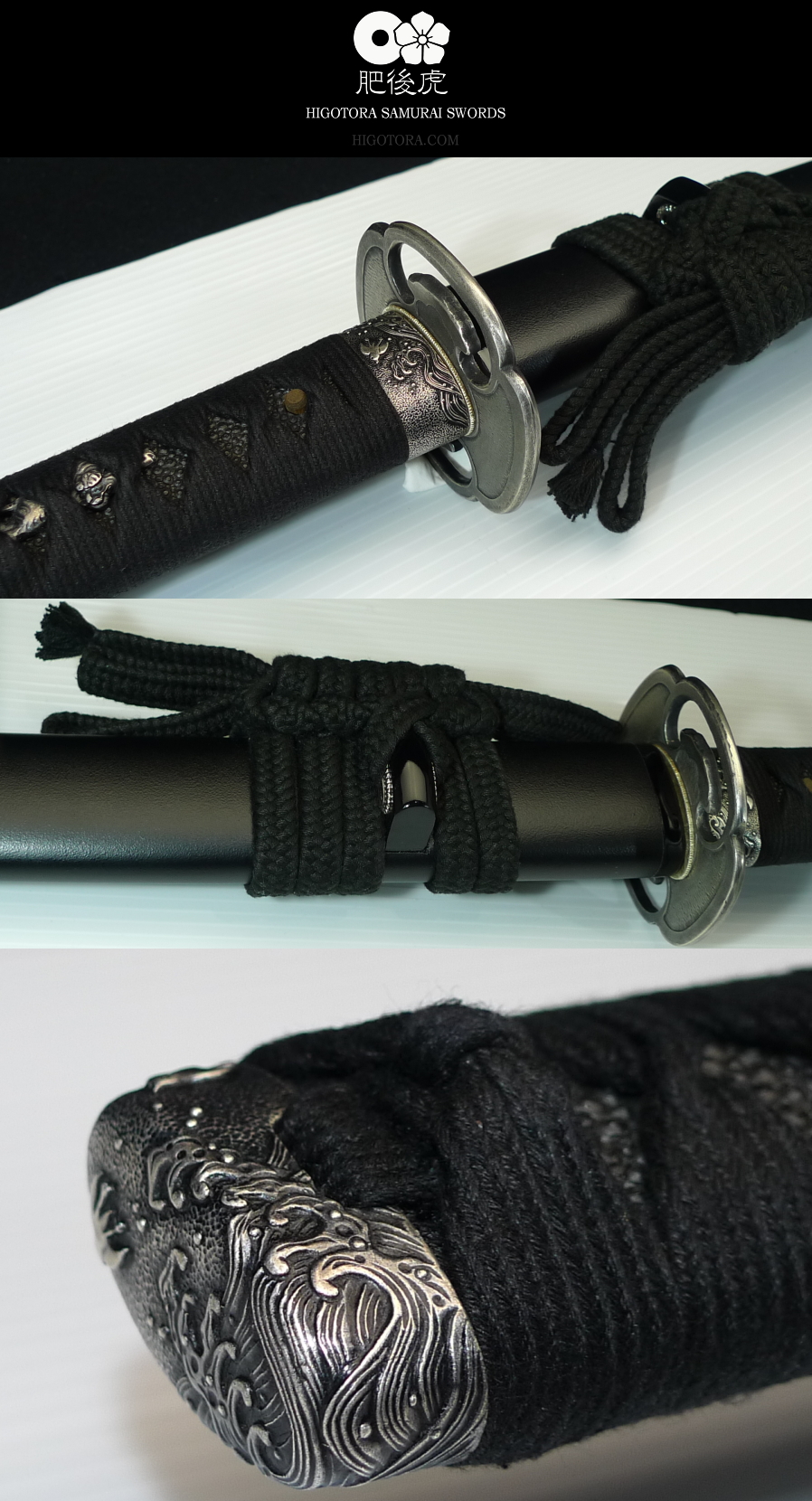 波千鳥銀古美縁頭 / 大虎目貫 / 本鮫皮黒染 / 竹製目釘2本打ち / 銀古美ハバキ