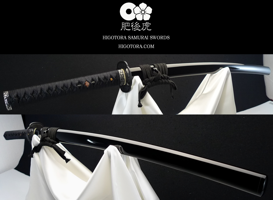 【フルオーダーメイド・模擬刀・肥後虎同田貫・2尺3寸・正絹巻き・本黒呂(黒蝋)重磨き塗り真剣塗り鞘】