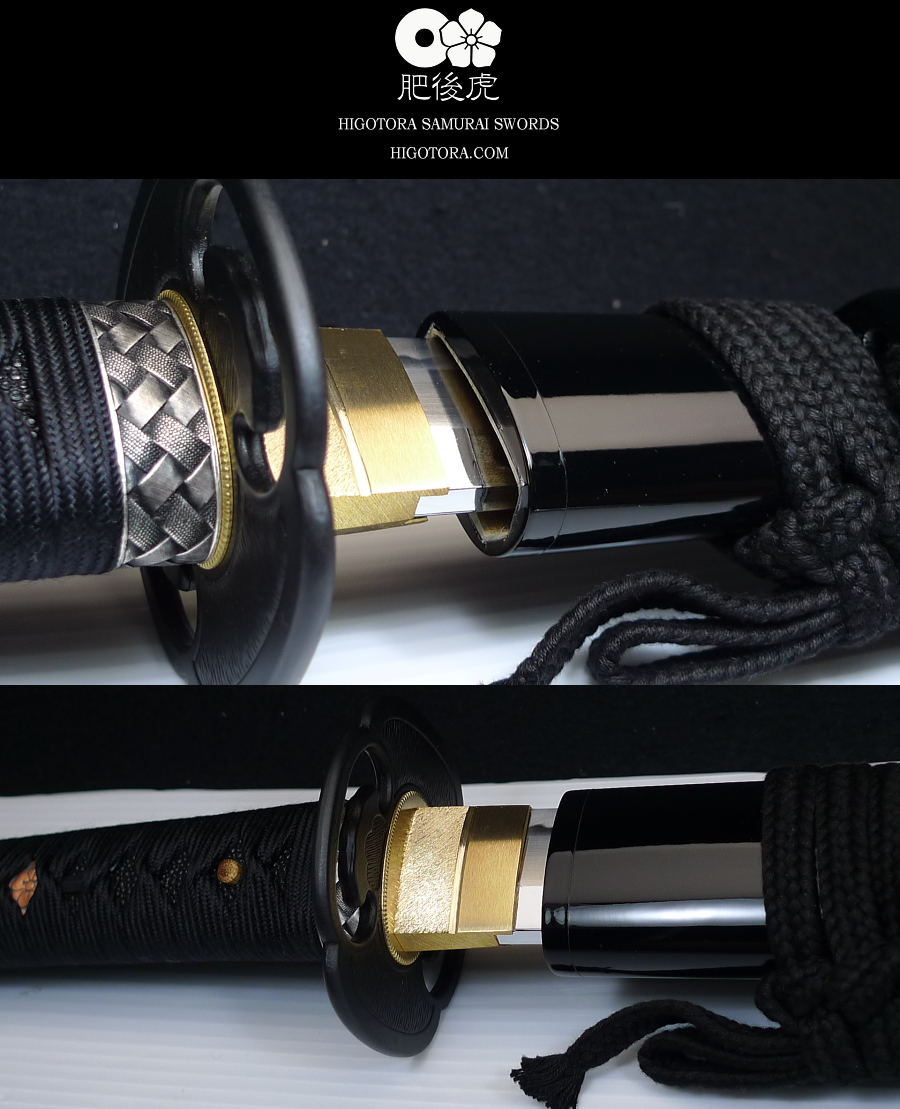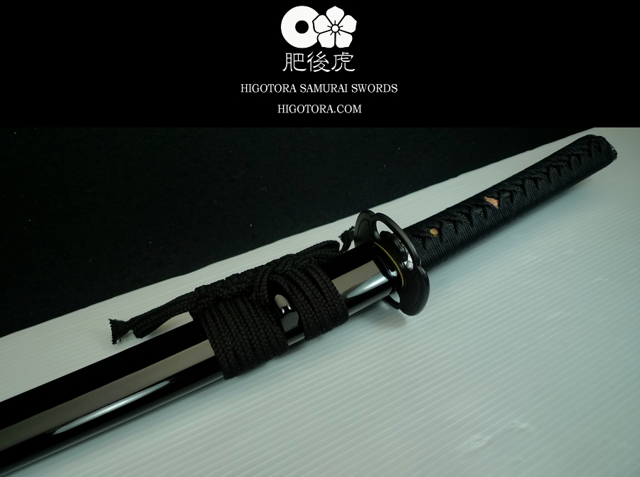 樋入り・鎬造・肥後虎同田貫刀身ベース / 直刃小乱れ刃文 / 肥後鍔 / 柄糸:正絹・黒