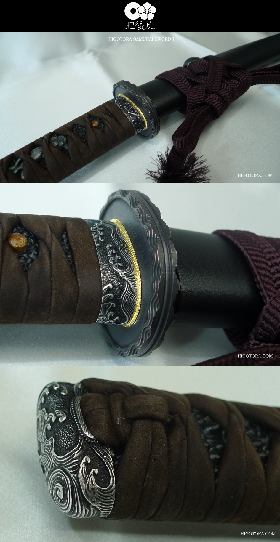 ■柄巻:真剣柄巻師による本牛革(裏革)巻・焦茶