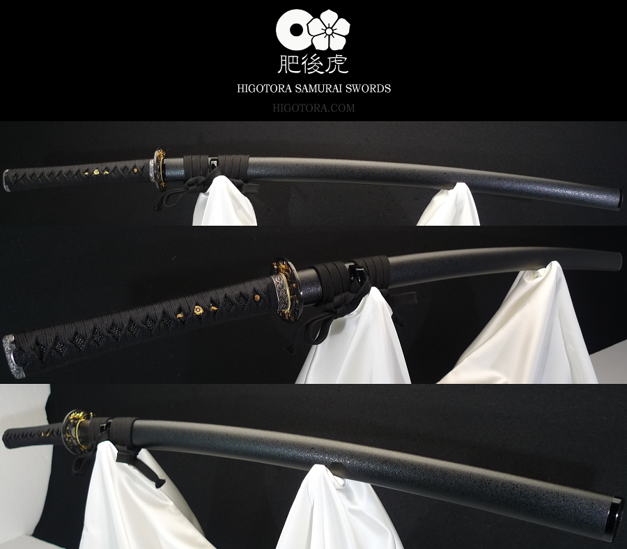 【フルオーダーメイド・模擬刀・肥後虎・2尺3寸5分・本黒石目塗り・肥後平波・銀古美金具】