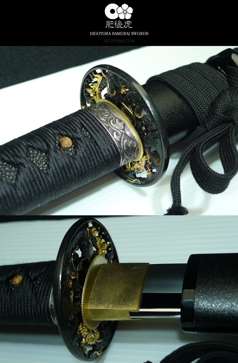 肥後虎標準刀身 / 指定刃文 / 龍透かし鍔 / 柄糸:正絹製・黒
