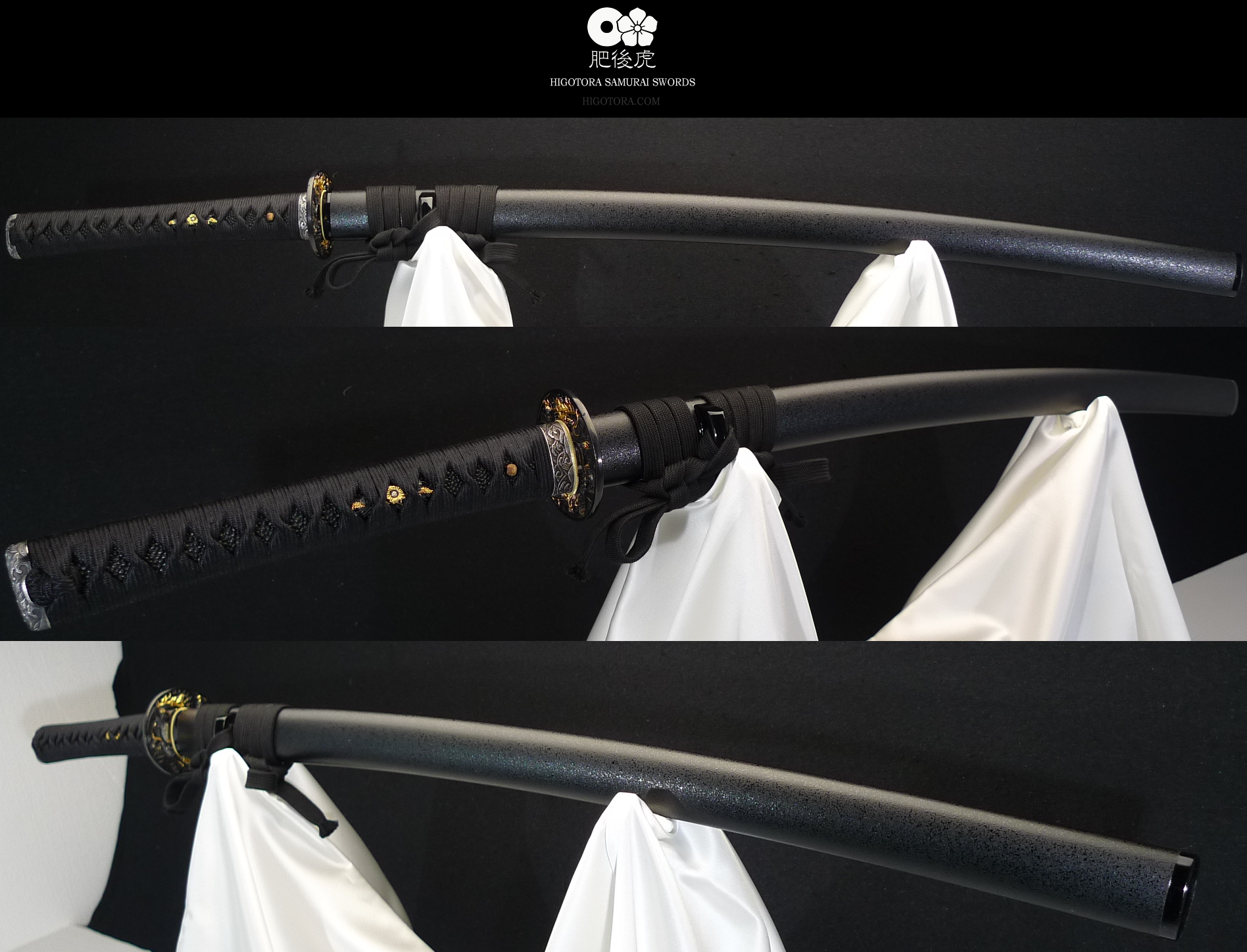 【フルオーダーメイド・模擬刀・肥後虎・2尺3寸5分・本黒石目塗り・肥後平波・銀古美金具】