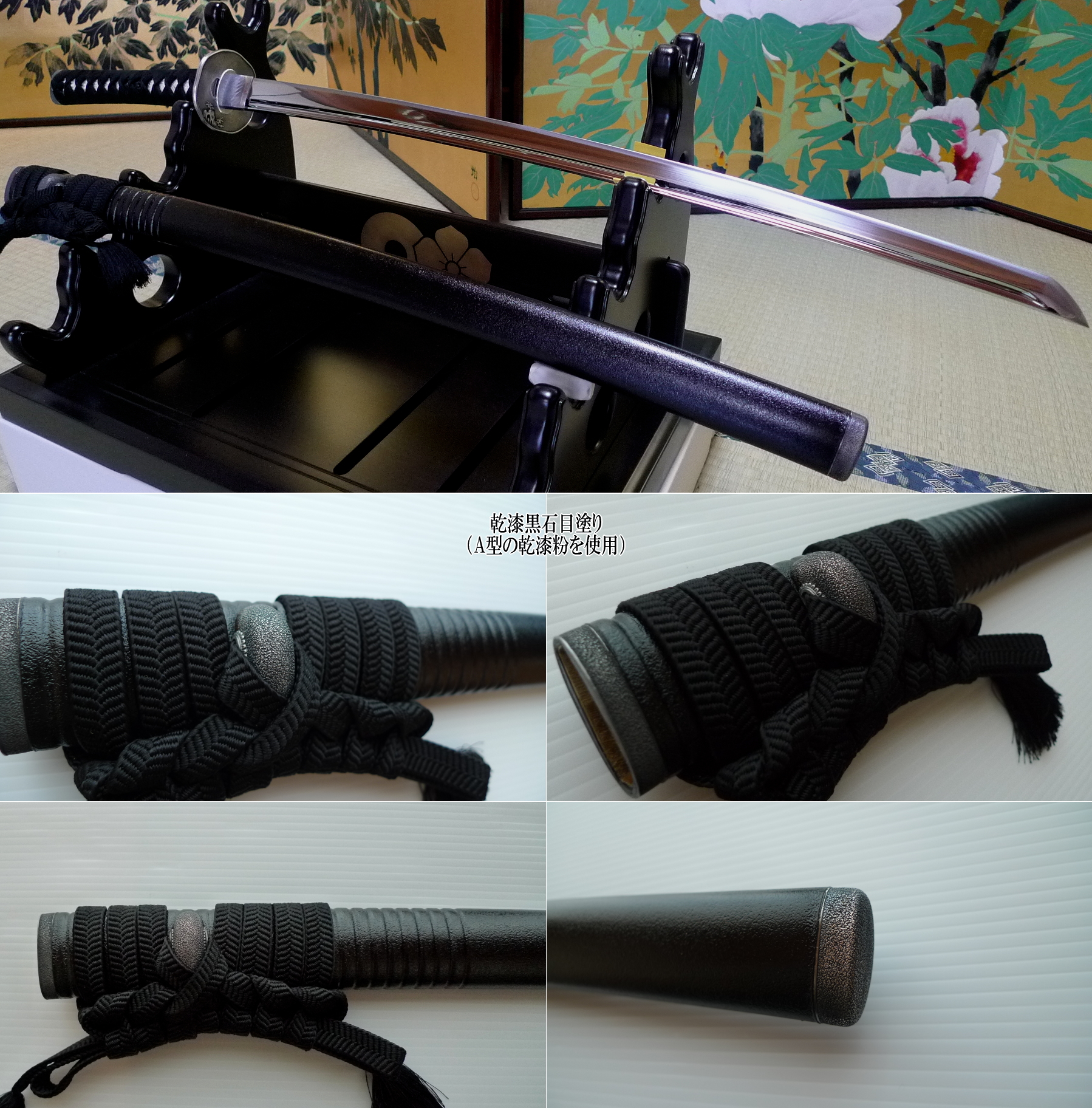 ■鞘塗り:乾漆黒石目・部分・千段