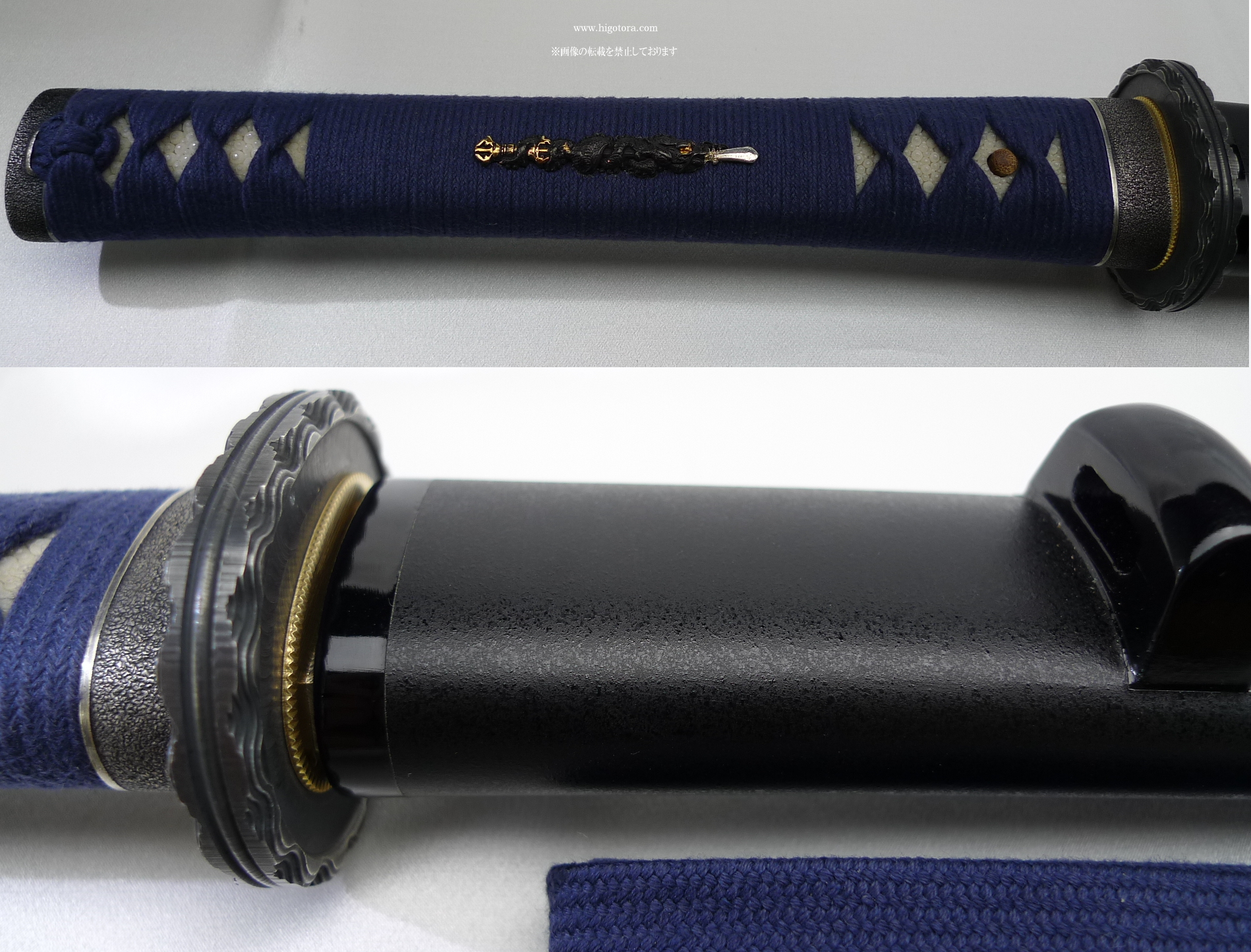 柄・本鮫皮 / 柄糸・純綿制・紺(一貫巻き)