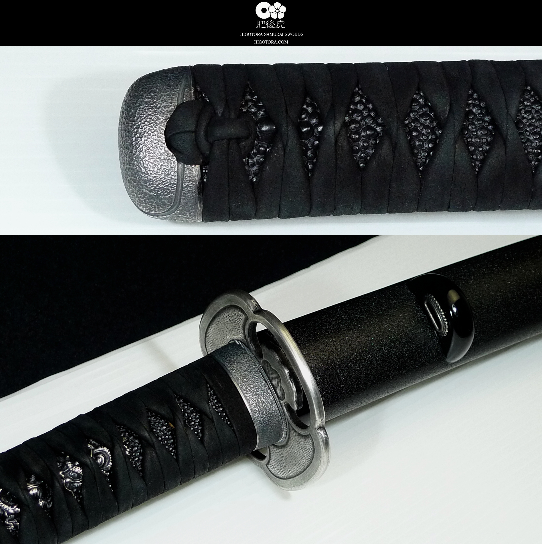豪壮な肥後銀金具、乾漆黒石目の鞘塗り、黒塗りの鮫、牛裏革による諸捻