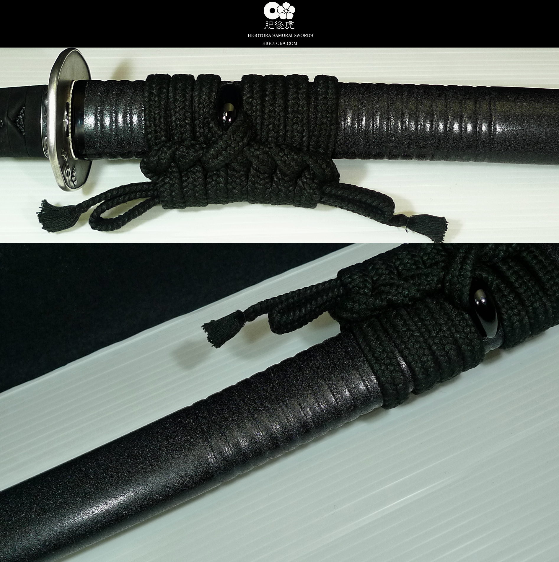 <肥後虎同田貫・樋無し245・革巻き・乾漆黒石目・突兵鐺>