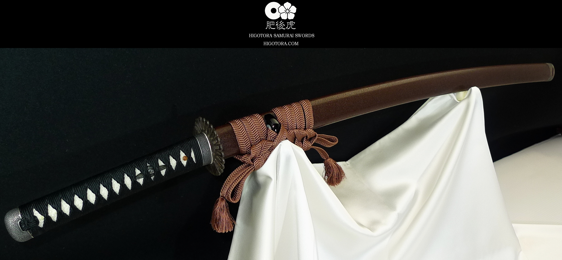 『乾漆茶石目塗り、正絹巻、土方肥後石目金具拵』