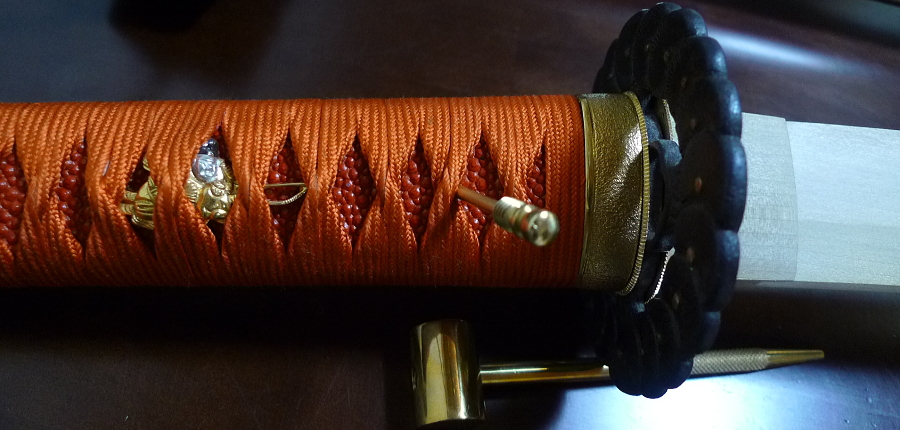 ■鯉口金具:ワンオフ製作・石目地・大・金着
