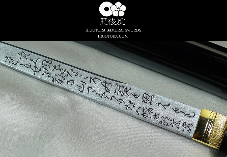 (刀身彫刻 『吹く風をなこその関と思へども道もせにちる山桜かな 八幡太郎義家』)