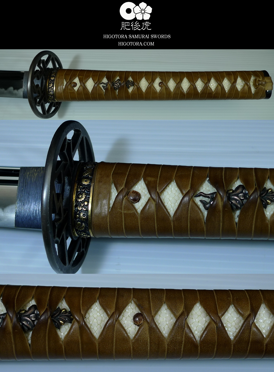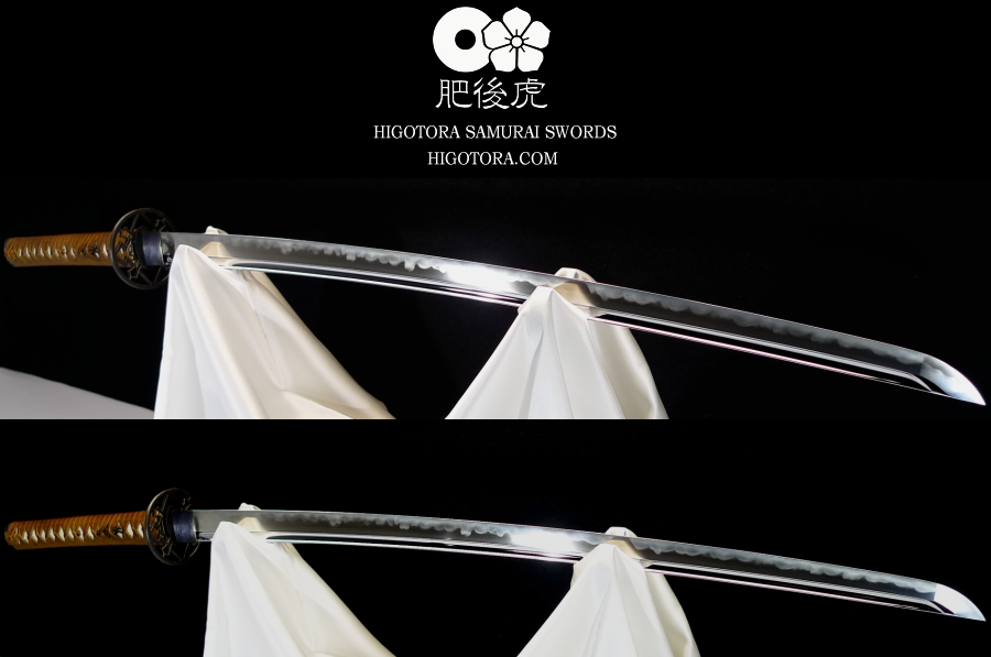 居合刀(模擬刀)製品一覧 ページへ戻る <模擬刀・製作例> 本職・研ぎ師 による 模擬刀・刃紋リメイク・刃紋付け直し 施工例 ※模擬刀への 『長船光忠写し刃文の再現』 と 『本煤竹目釘の製作』 を行いました。 <※画像を CLICK していただくと、より大きな画像をご覧いただけます> 居合刀(模擬刀)製品一覧 ページへ戻る
