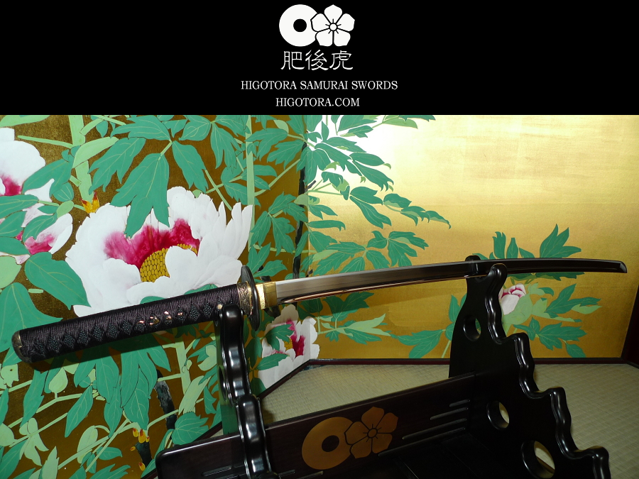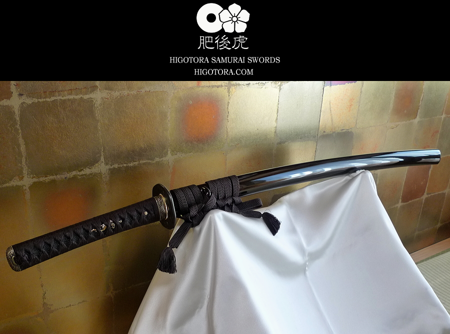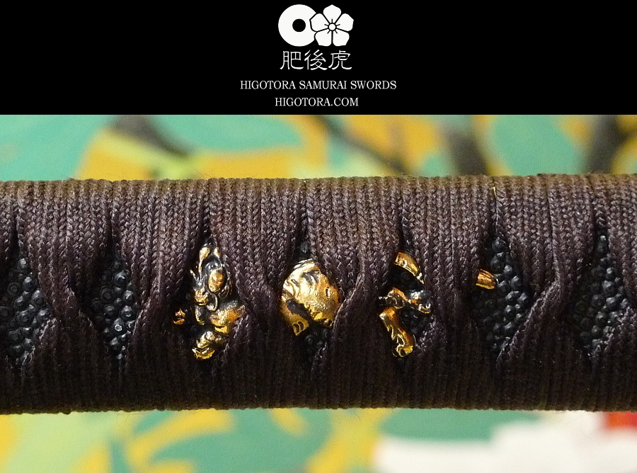 目貫を大虎、本黒鮫に正絹巻の柄、刃文を同田貫正