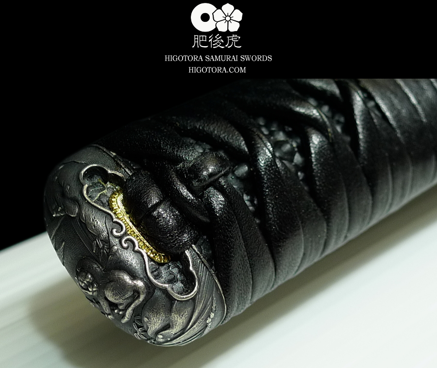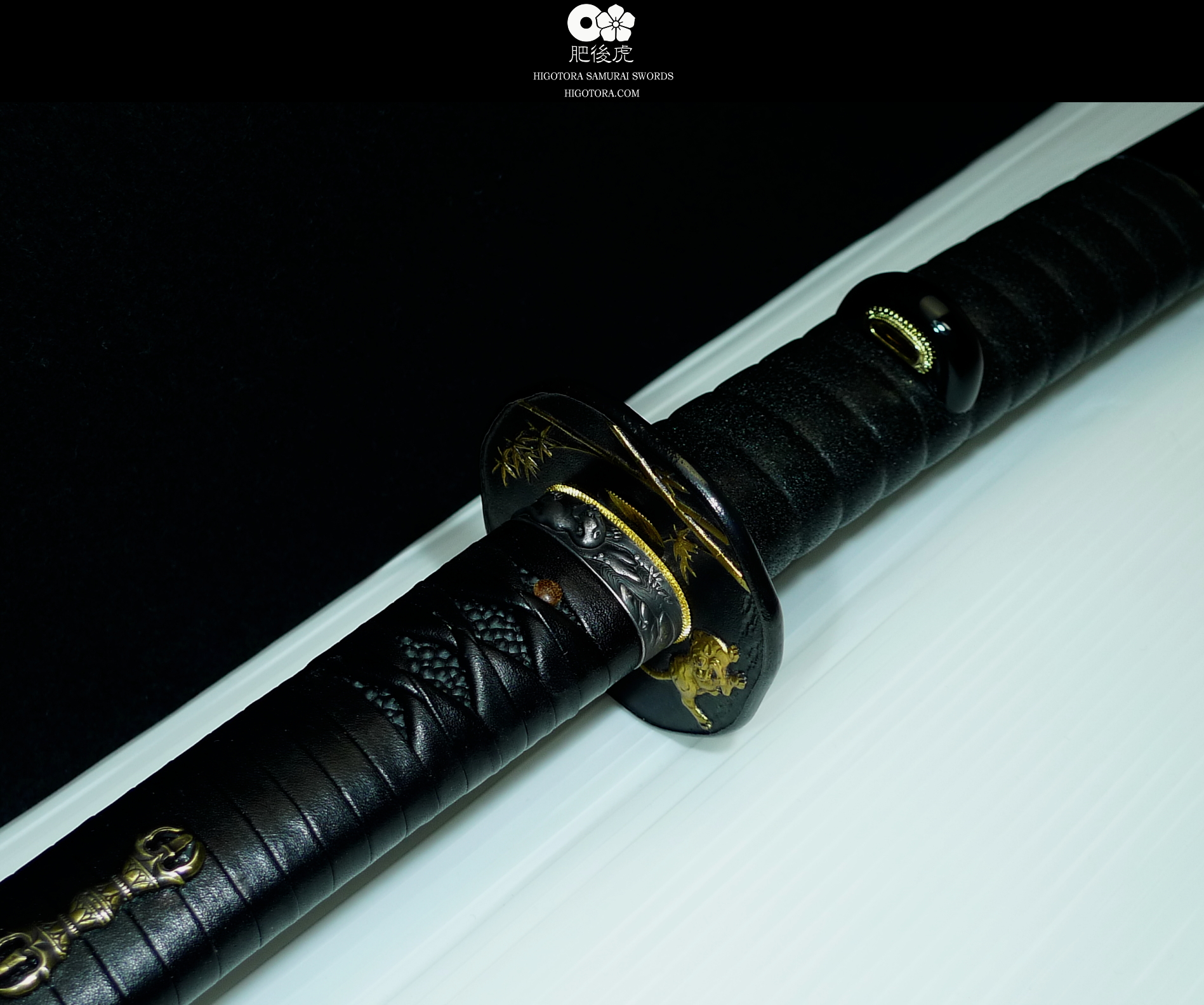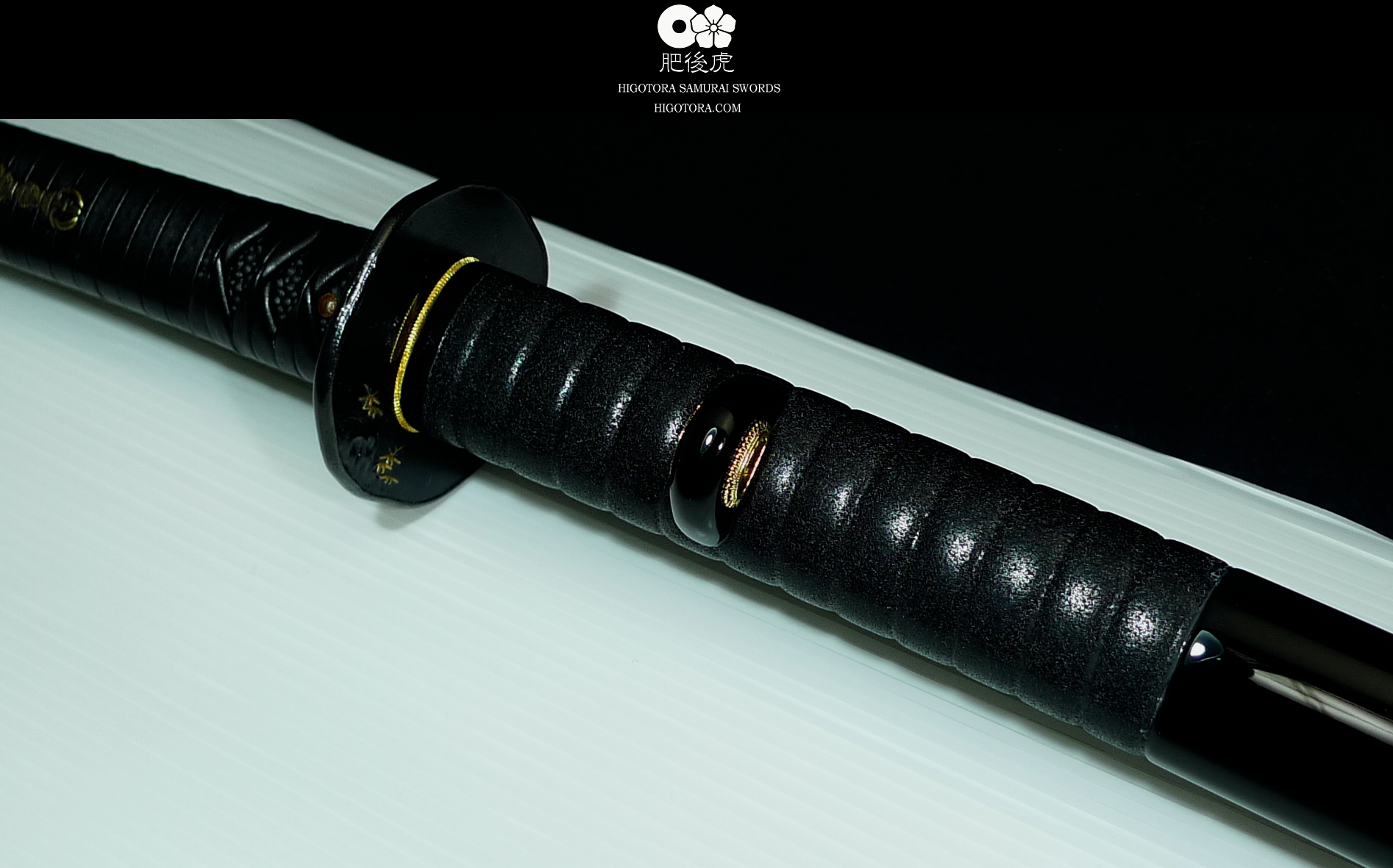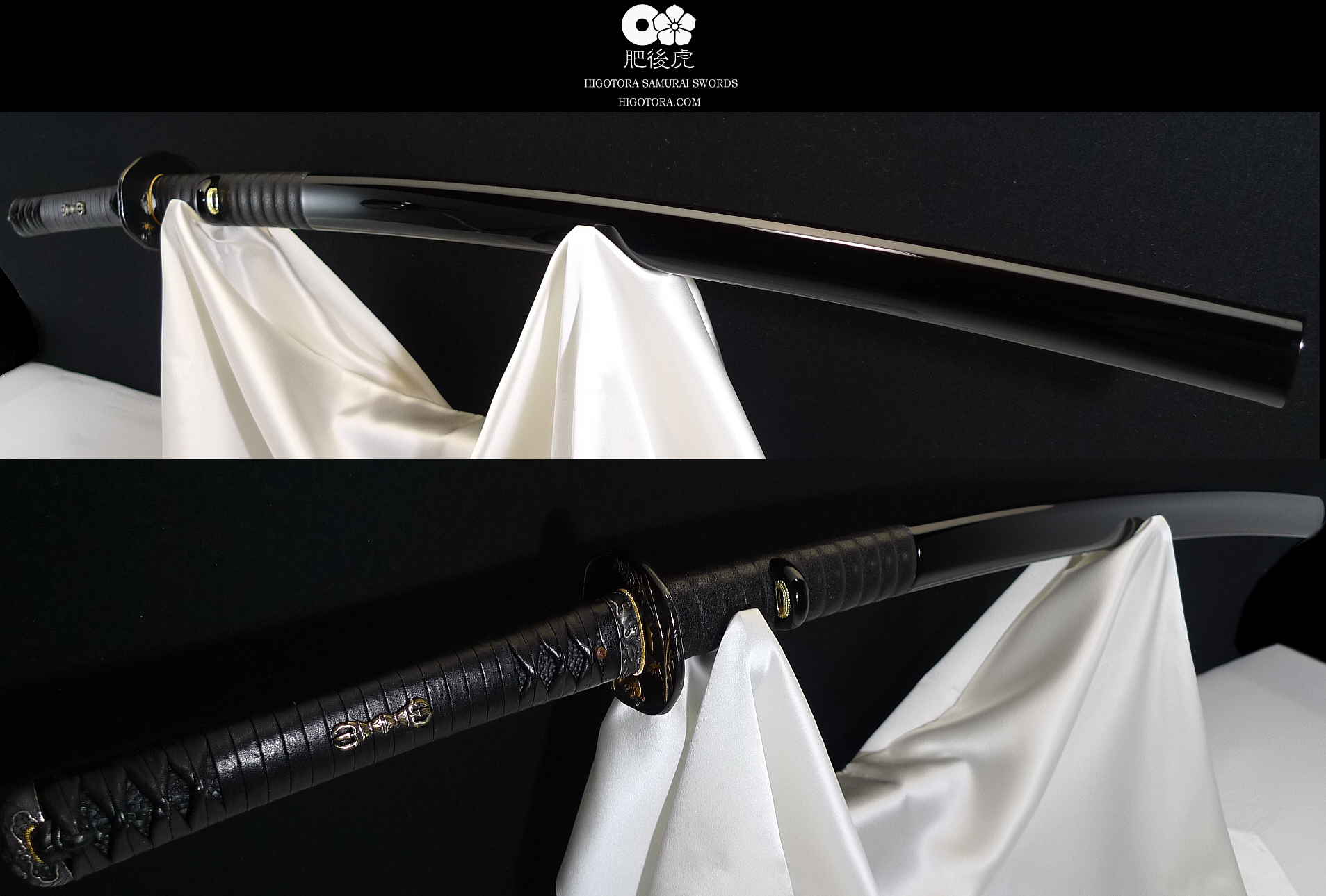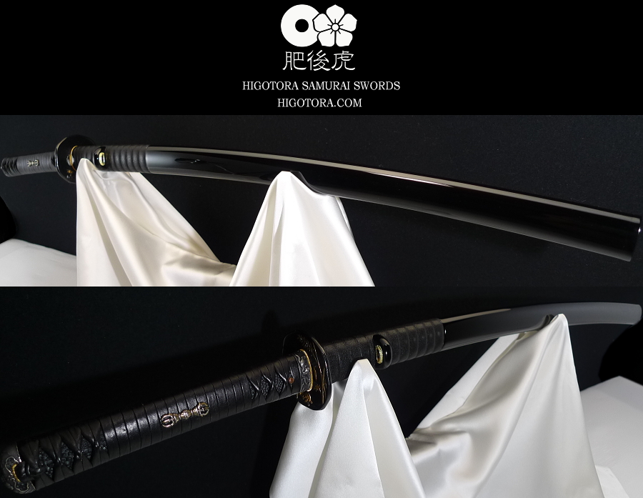 <真剣諸工作・革巻柄・乾漆黒石目/黒呂塗り分け鞘仕様>