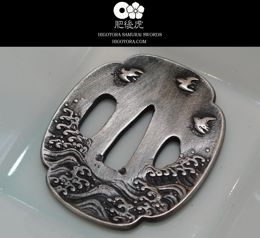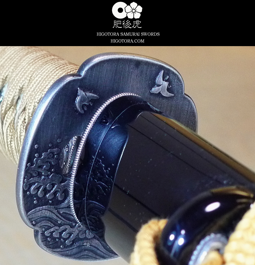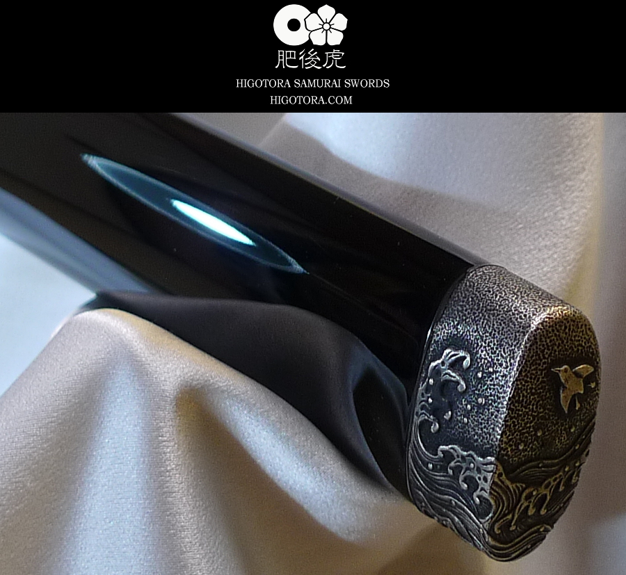 お客様お好みの波千鳥銀古美金具4点、親粒付きの白鮫皮、