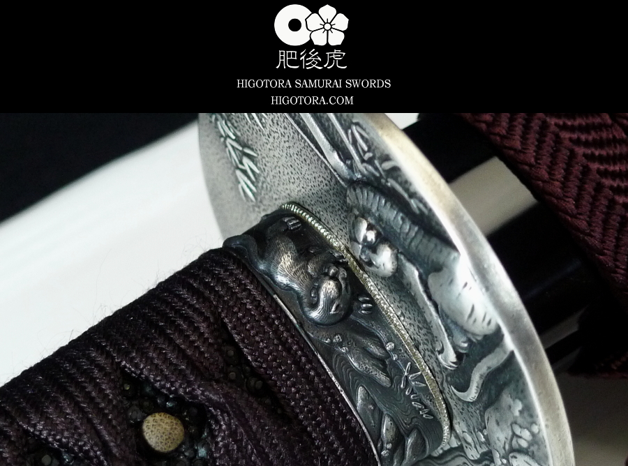 ■鍔: 高彫り薩摩虎図・銀古美