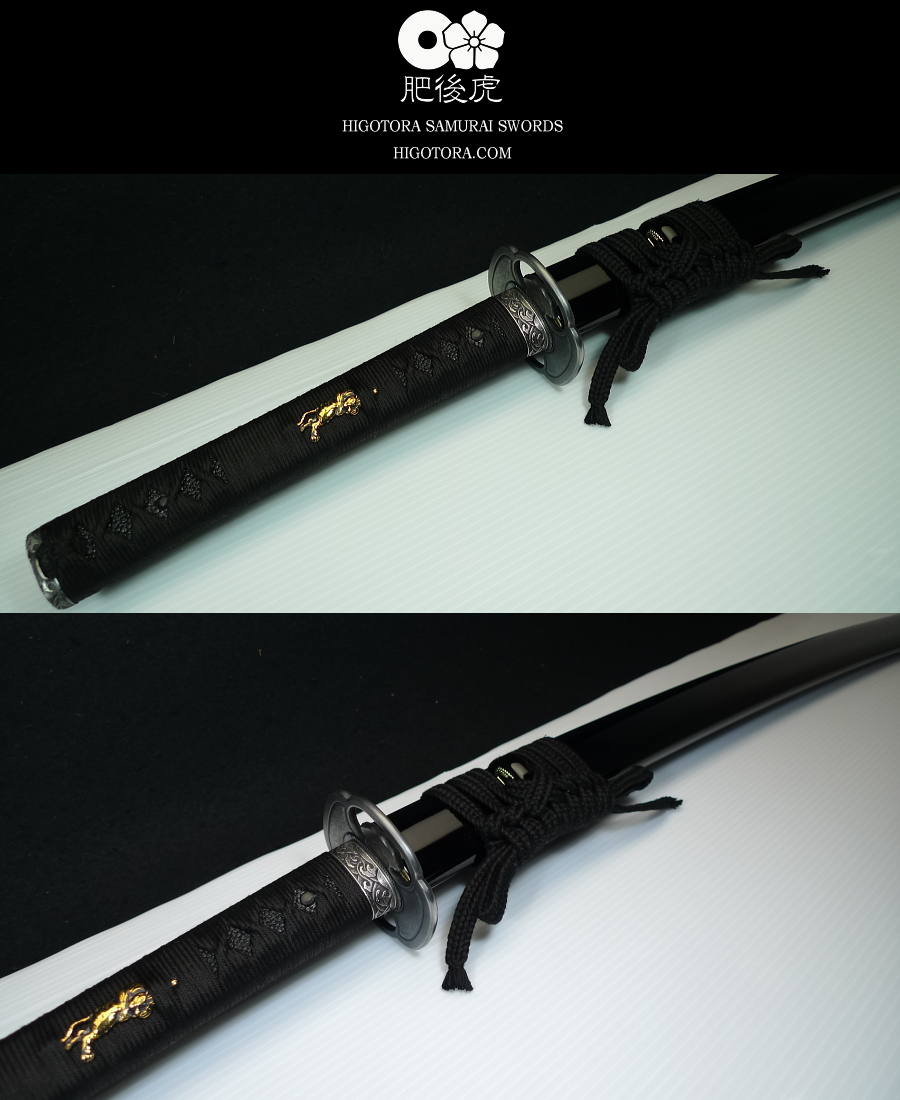 【フルオーダーメイド・模擬刀・肥後虎 同田貫・2尺4寸5分・黒蝋(本黒呂)塗り】