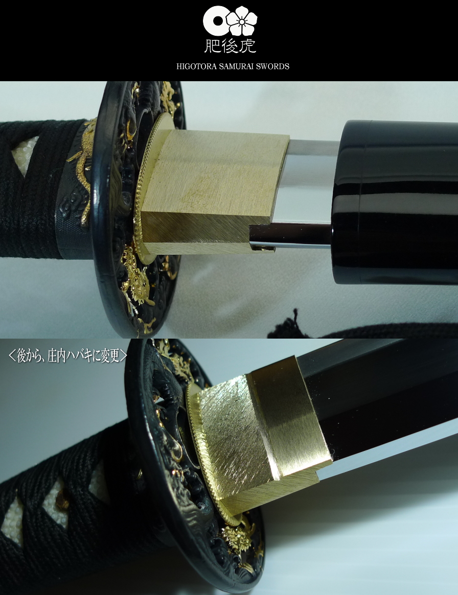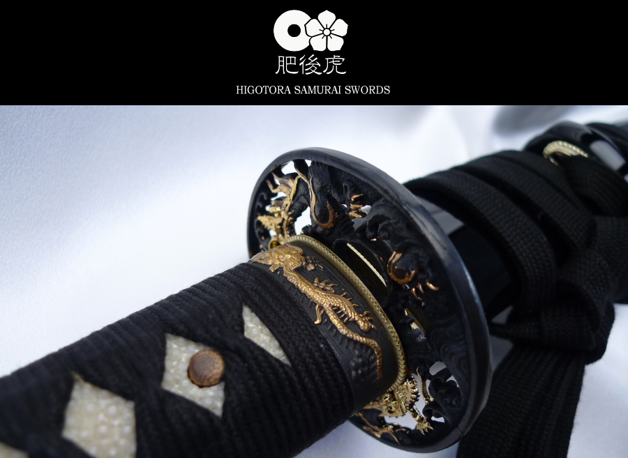 【2尺5寸 肥後虎 オーダーメイド同田貫 龍金具・龍透かし鍔・本黒呂(黒蝋)塗鞘】