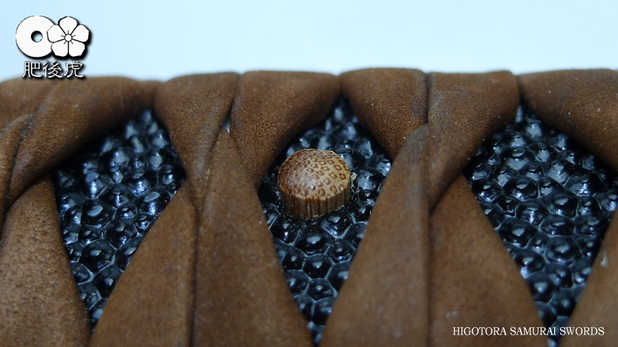 ・鞘鯉口〜栗形部周辺まで広範囲に渡り、 鞘中刃側に水牛角による補強入り。 【鞘切れ防止補強】