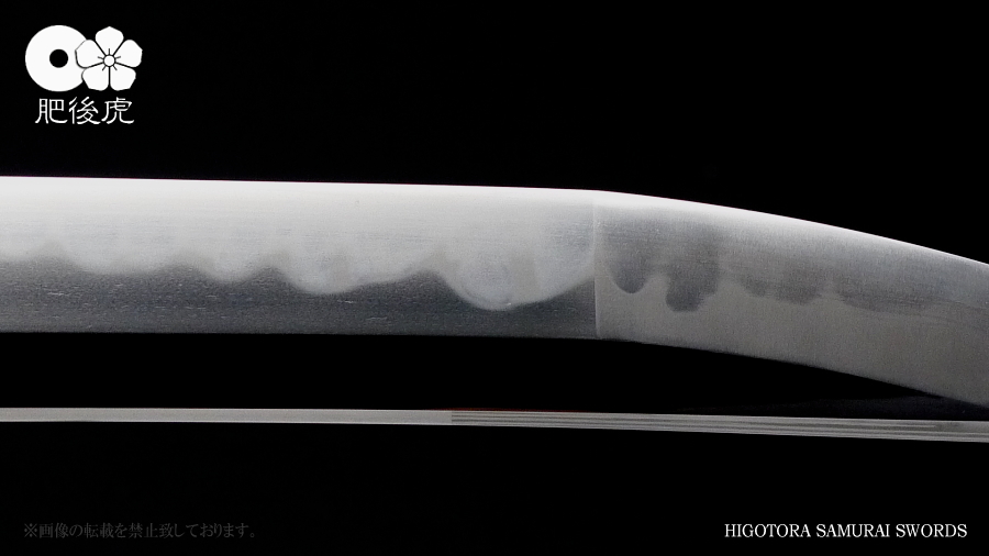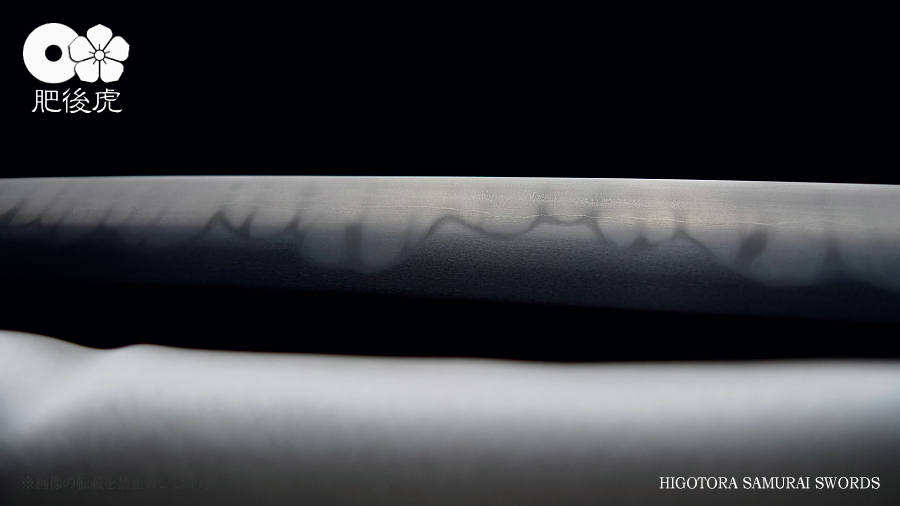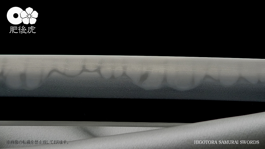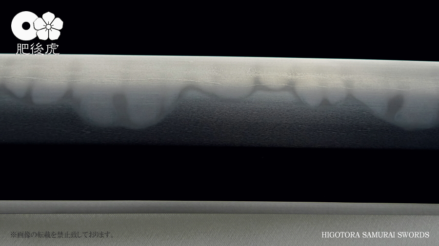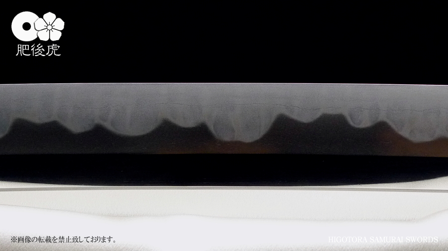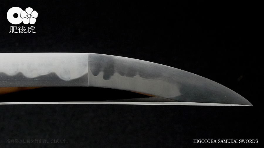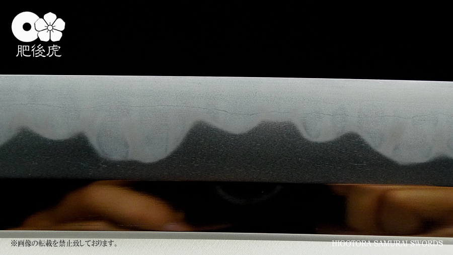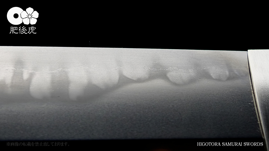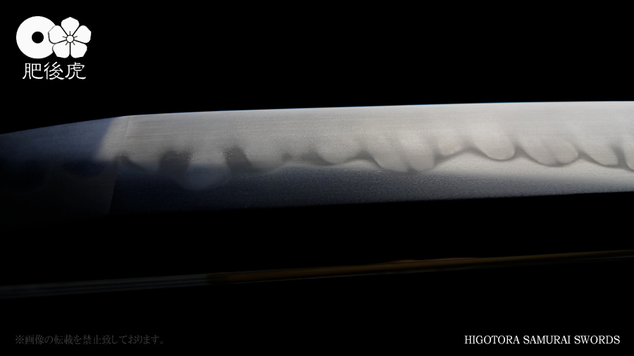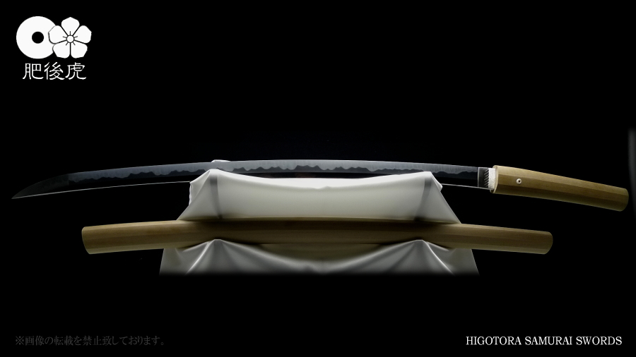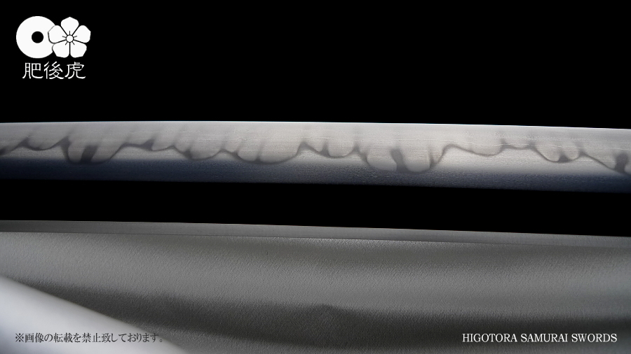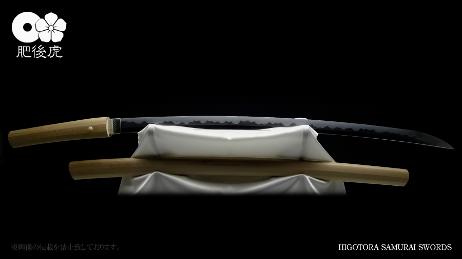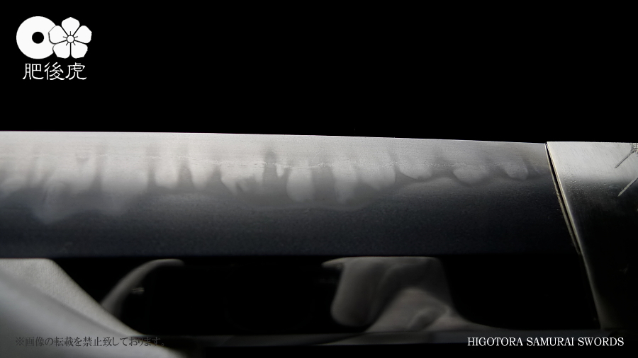 <製作例> ※随時、ご注文受付中です。製作ご希望の方は、肥後虎まで、ご相談下さい。 肥後虎・本鍛刀・2尺8寸 豪壮型 肥後虎特別造り 肥後国八代住赤松太郎兼嗣作 写 清麿 本三枚鍛 二尺八寸 以自家製鉄鍛之 ■刃長:二尺八寸(84.8cm) ■反り:2.3cm ■元幅:40mm ■元鎬重:9.4mm ■元棟重:8.4mm ■先幅:32mm ■先鎬重:6.9mm ■先棟重:6o ■切先長:10.3cm ■茎造:実戦型茎造り、茎棟に小肉付く ■裸身重量:1,512g ■目釘穴:2つ ■体配:鎬造、庵棟 ■地鉄:丹念に練られ鍛えられた地鉄は、小板目肌見事に詰んで、地沸付き、潤いもって美しく輝く。 ■刃文:源清麿最上作写 変化に富んだ互の目刃文は、丁子を交え、沸深く、足入り、金筋・砂流が絶妙に現れる。 ■帽子:大切先、掃き掛け交え、乱れ込んで、先小丸に返る ◆肥後虎・最上研磨済 ◆白鞘(上)付き(超高精度仕立) ◆ハバキ・銀無垢・祐乗・豪壮型・付き <説明> 肥後虎特別発注により鍛えられた本鍛刀であり、『折れず曲がらずよく斬れる』事は勿論の事、 天下無類の地刃の美しさが表現されている。 丹念に練られ鍛えられた地鉄は小板目肌が見事に詰んで、地沸、地景現れ、潤いもって美しく輝く。 変化に富んだ互の目刃文は、丁子を交え、沸深く、足入り、金筋・砂流が絶妙に現れる。 大切先の帽子は、掃き掛け交え、乱れ込んで先小丸に返る。 肥後虎の特注により、源清麿・大成期の最上作を写した作であり、その出来の素晴らしさは到 底他工の追従を許さない。 原料となる砂鉄を自らの手で採取し、独自工法の自家製鉄で造られる最良質の鉄鋼と、研究 重ねた鍛練法と造り込みにより、強さと性能と美を極め、天下無類にして、源清麿の作を凌駕 せんばかりの見事な出来と、溢れんばかりのエネルギーに圧倒させられる赤松太郎兼嗣の傑作。 「鬼の包丁」の如く豪壮で、重量のある刀身ながら、手持ち調子良く、バランスの良い造り込 みが施されている。 究極の美と、究極の性能が、高レベルで融合した、最高傑作。 <肥後國住赤松太郎兼嗣(木村兼定)プロフィール> 肥後國住赤松太郎兼嗣(木村兼定)プロフィール <肥後國住赤松太郎兼嗣(木村兼定)プロフィール> 肥後國住 赤松太郎兼嗣(木村兼定)氏は熊本県八代の名工。 赤松太郎刀匠一門(「兼嗣」・「兼裕」・「兼光」・「兼照」・「兼幸」)の長。 木村家(赤松太郎家)は、人吉藩・城主・相良家のお抱え鍛冶としても活躍してきた由緒ある家。 現在、赤松太郎刀匠一門は全て銘に【赤松太郎】を冠し、一族から鍛え上げられた大切先の清麿 写等の豪刀は、かの清麿を超える今世紀を代表する殿堂入りの剣と度々評価され、美術刀剣コレ クターや、試斬を行う居合家から最高の人気をはくし続けている。 古刀コレクターでも、赤松太郎の清麿写だけは資産として確保している者も多い。 赤松太郎一族は肥後国延寿派や肥後国同田貫派の生まれた地で、古来より鉄に拘り続け、今でも 一族の手により素材(砂鉄)の採取から行い、自家製鉄によって独自の玉鋼を生成し、その玉鋼 と赤松太郎一門の鍛練技術によって、天下無類の強靭かつ美しい刀が造られる。 その強度、切れ味、地鉄の冴え、刃の冴えは、現代刀の中でも最高とも言われている。 日本全国の現代刀工の殆どは日刀保から供給される玉鋼を使って鍛刀しているのが現状であり、 赤松太郎一門のように自らの手で素材採取から手掛ける刀工は希少。 ある時、赤松太郎一門の地鉄の冴えに惚れ込んだ刀匠が、赤松太郎一門から自家製鉄の玉鋼を買 い求め、作刀に挑んだが、鉄の強靭さと特殊さゆえに、手に負えなかったという話がある、 全ては、折れず、曲がらず、よく斬れ、美しく冴えた刀を造る為。 「新作刀展」では平成十六年の優秀賞、その後も、十七年、十八年と連続して受賞を重ねている。 名実共にトップクラスの名工。 【肥後虎・本鍛刀】を製作するにあたり、本鍛による製作はもちろんのこと、他の刀には無い特 殊な造り込みを施し、最高レベルの斬れ味、強靭性、手持ちの良さ、振りのバランス、そして見 るほどに惹きつけられる刃や地鉄の美しさを追求。 比類無き名刀 【肥後虎赤松太郎】 を是非お試し頂きたい。 ※随時、ご注文受付中です。製作ご希望の方は、ご相談下さい。 <ココをクリックすると大きな画像でご覧頂けます> ![]() ![]() ![]() ![]() ![]() ![]() ![]() ![]() ![]() ![]() ![]() ![]() ![]() ![]() ![]() ![]() ![]() ![]() ![]() ![]() |