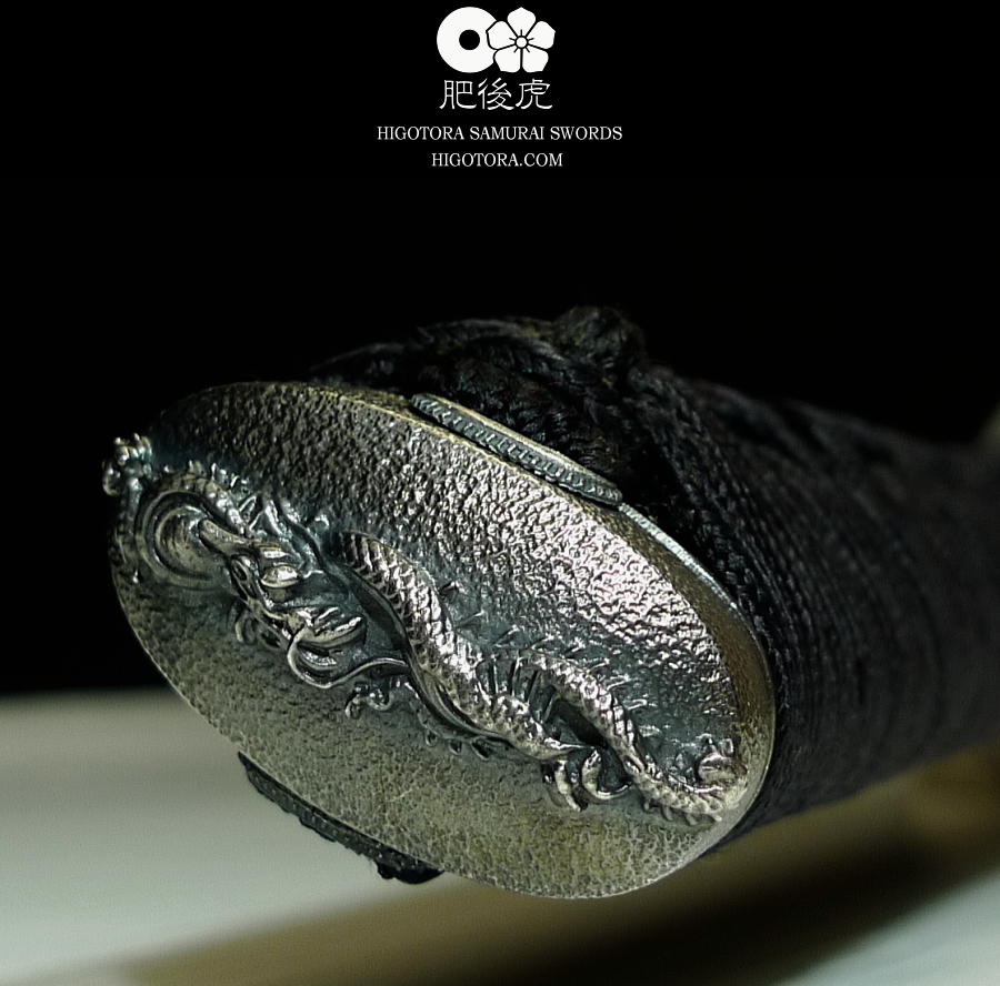 ■縁頭金具:高彫り大龍・銀無垢燻し・46mm