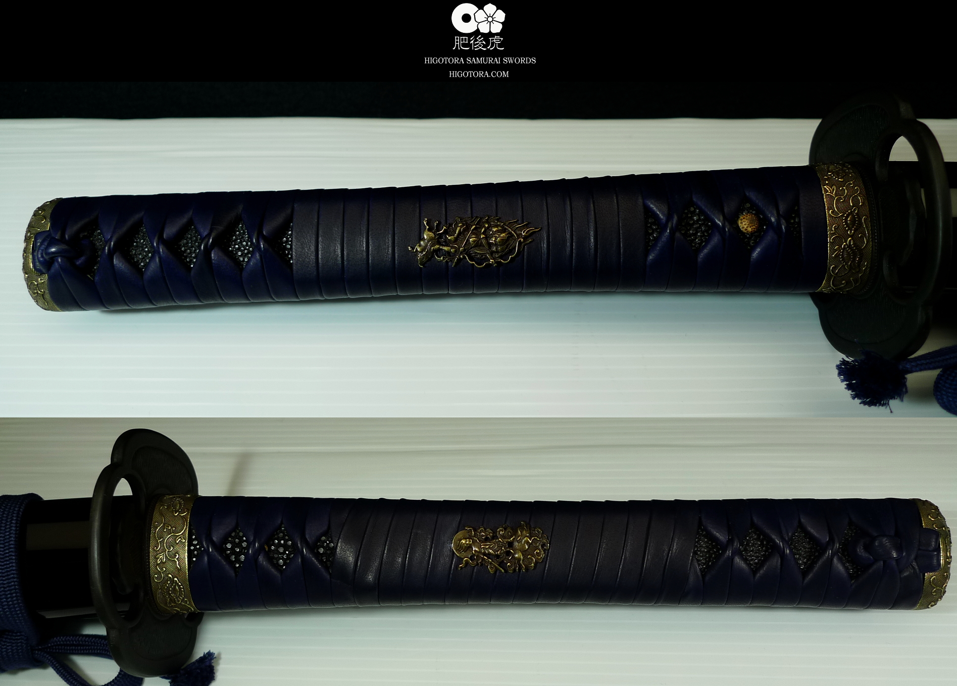 【2尺4寸5分 肥後虎標準刀 オーダーメイド 一貫巻(片手巻)本鹿吟藍染】