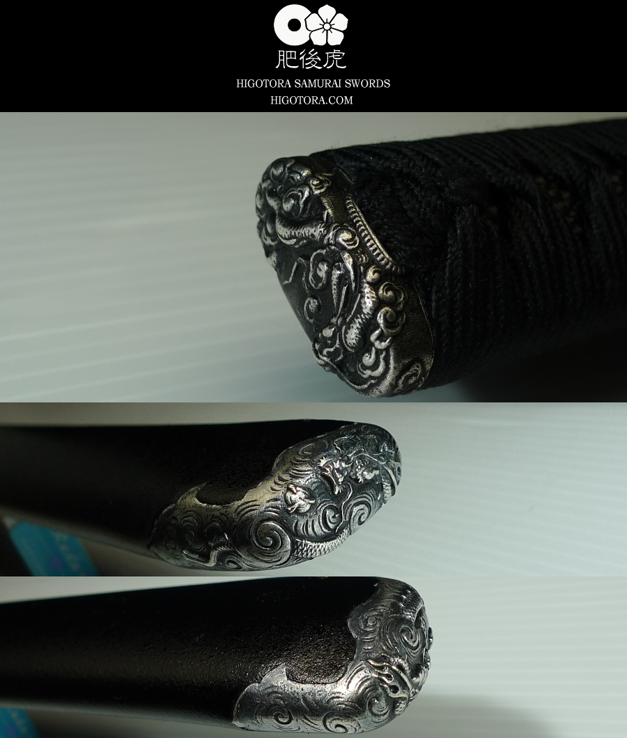 龍・銀古美・鐺 / 剣巻龍・銀古美・目貫 / 本鮫皮・黒染 / 本煤竹製目釘・1本・垂直打