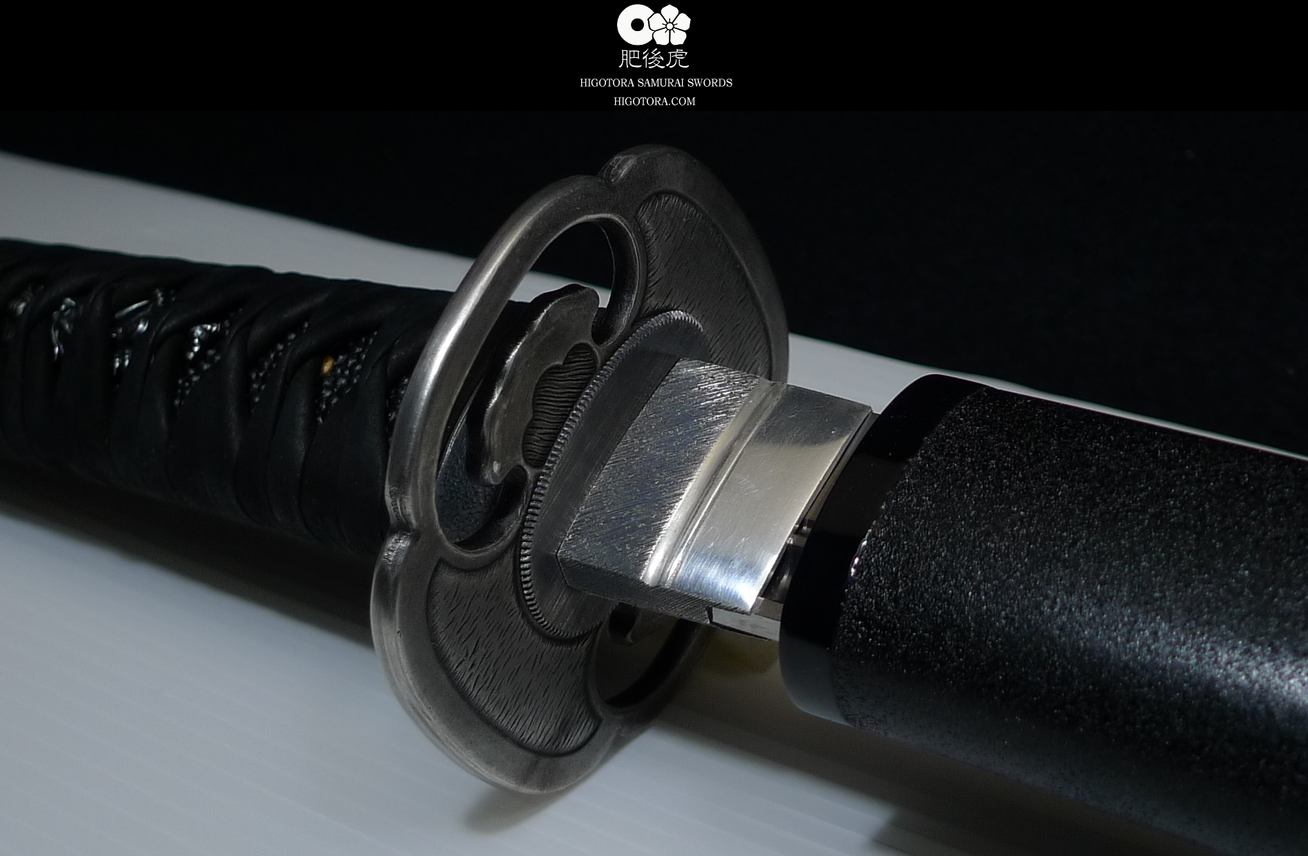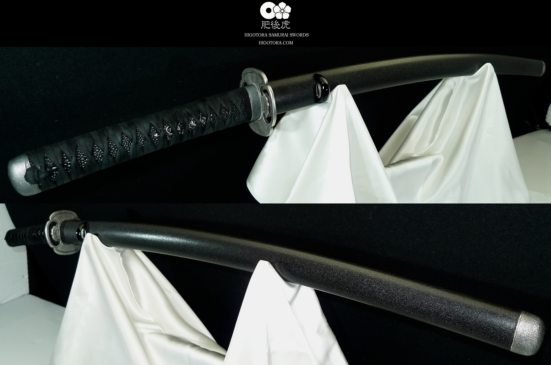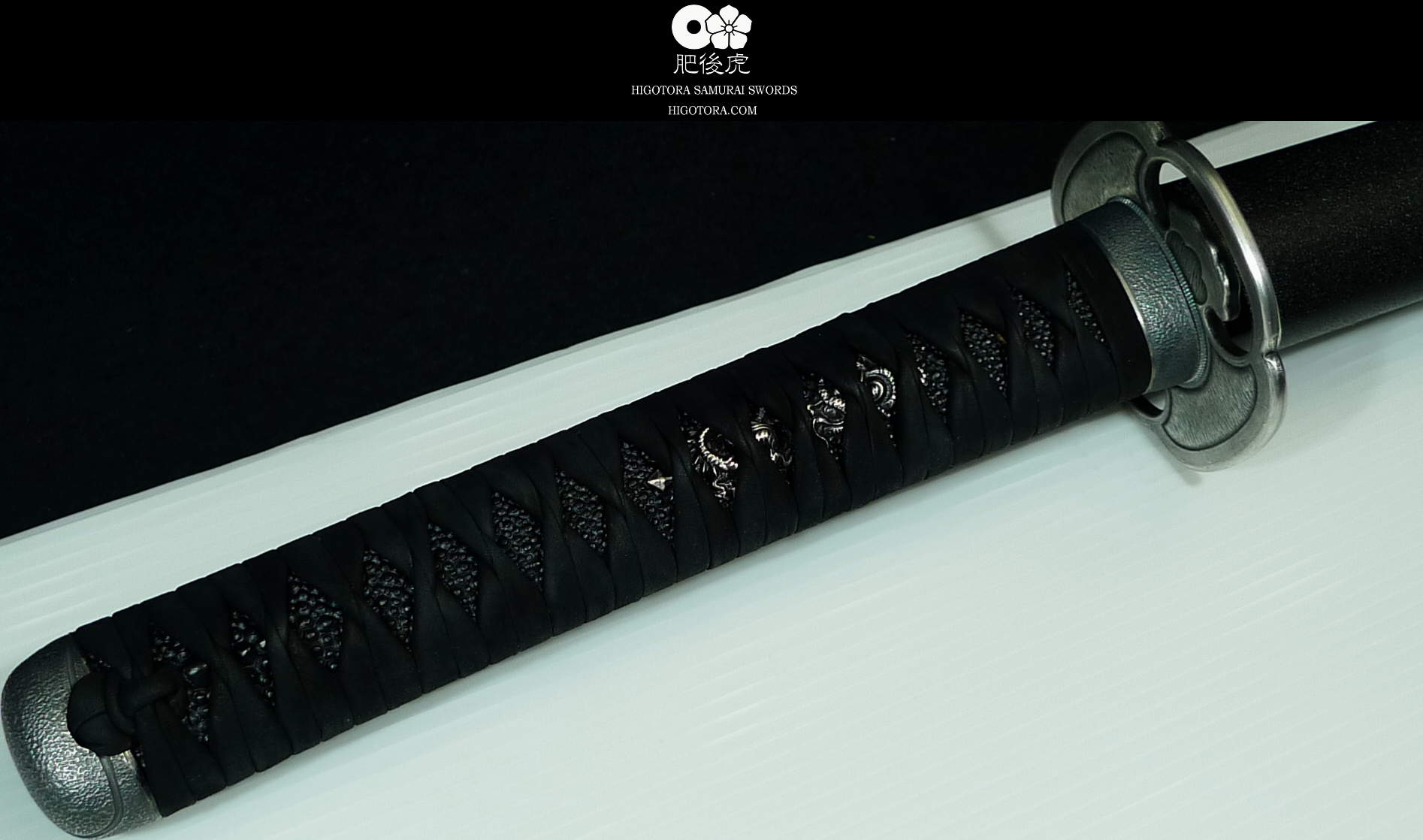 豪壮な肥後銀金具、乾漆黒石目の鞘塗り、黒塗りの鮫、牛裏革による諸捻