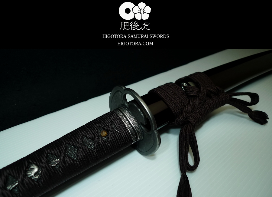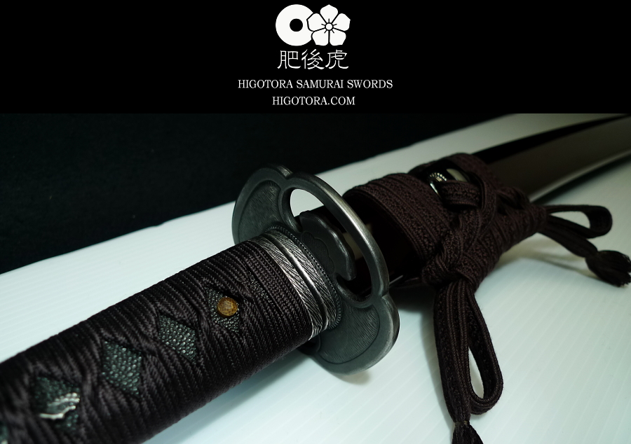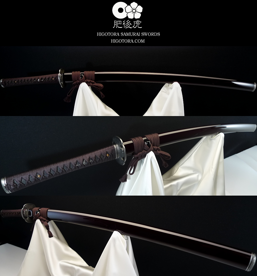 【肥後虎模擬刀・肥後虎同田貫・2尺6寸・本科ハバキ・正絹巻・栗朱ウルミワイン塗】