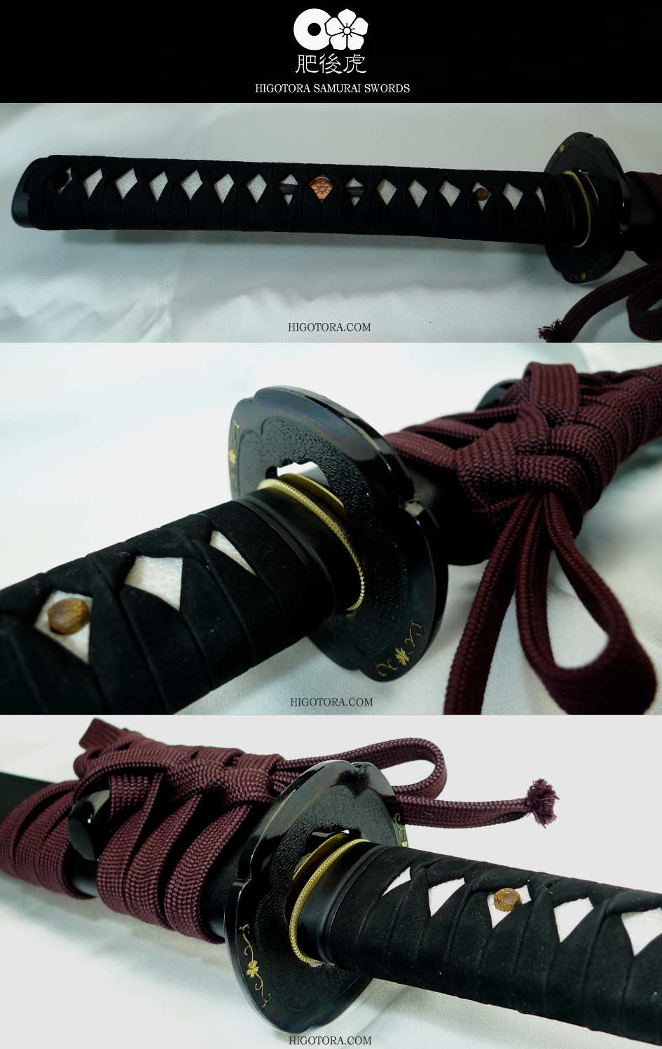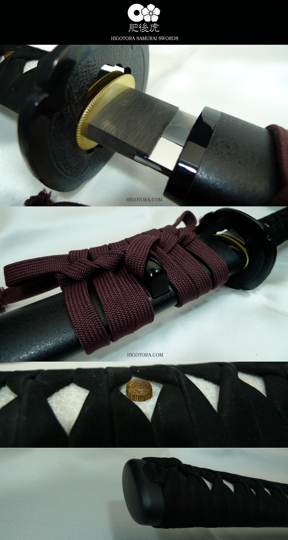 目釘・煤竹製・1本垂直打ち / 黒石目塗り鞘 / 刀身保護コート