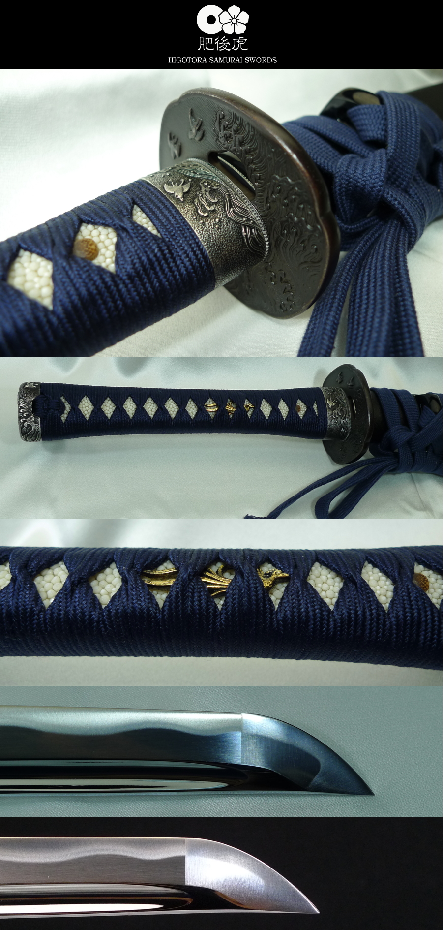 樋入り刀身 / 湾れ刃文 / 本鮫皮 / 柄糸・正絹(紺)