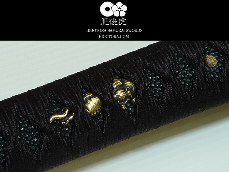 目貫を大虎、本黒鮫に正絹巻の柄、刃文を同田貫正