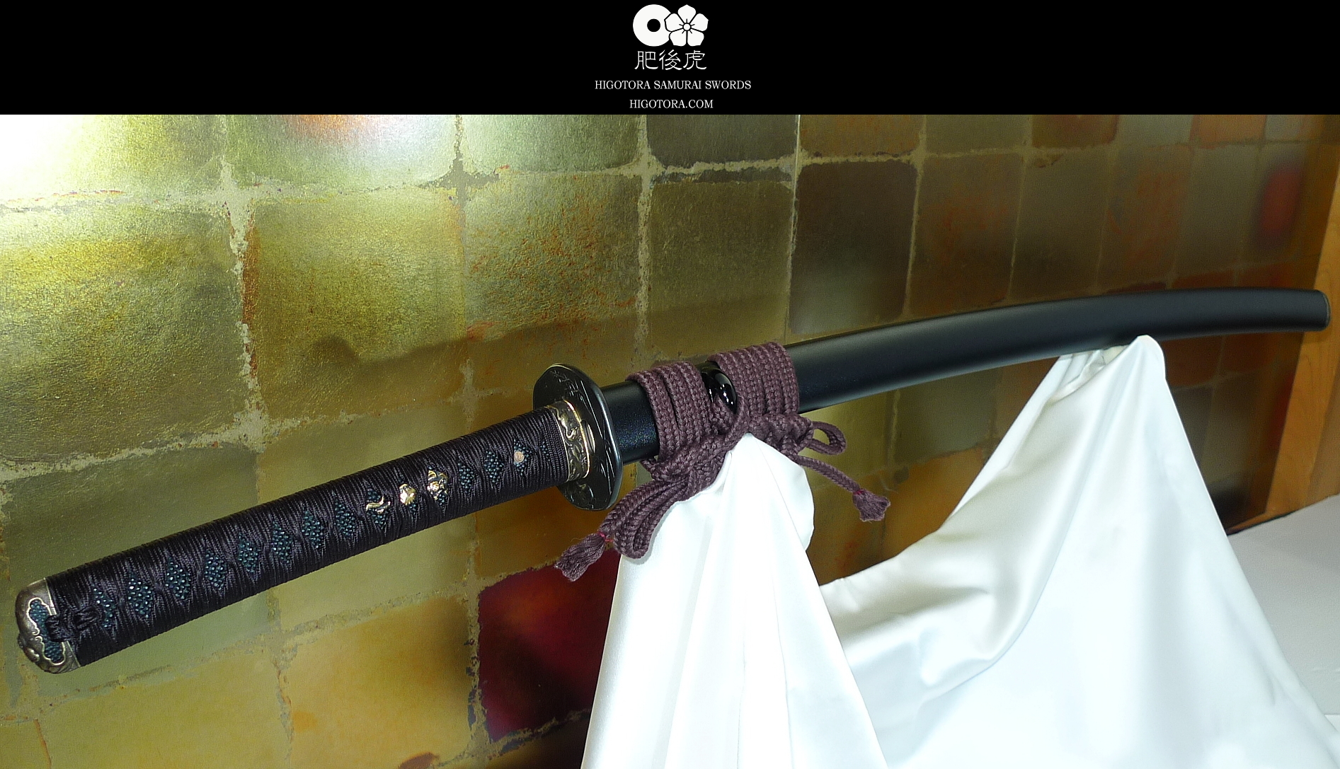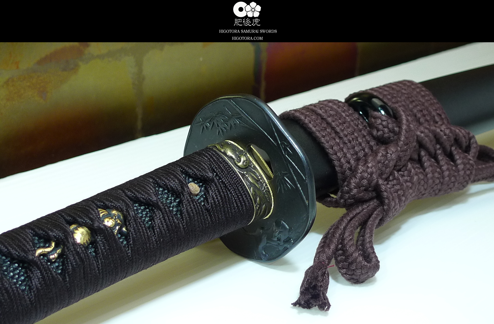 目貫を大虎、本黒鮫に正絹巻の柄、刃文を同田貫正