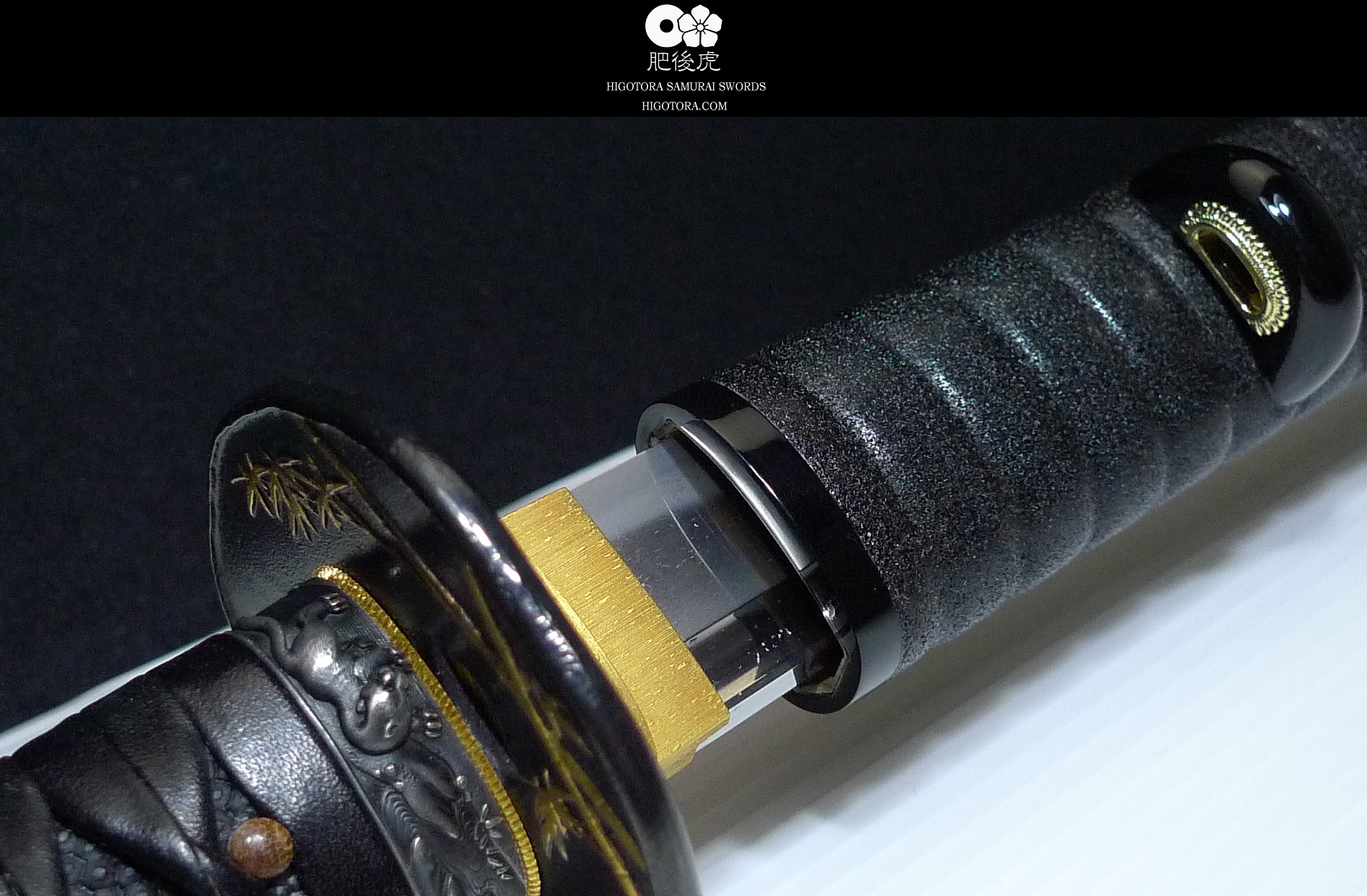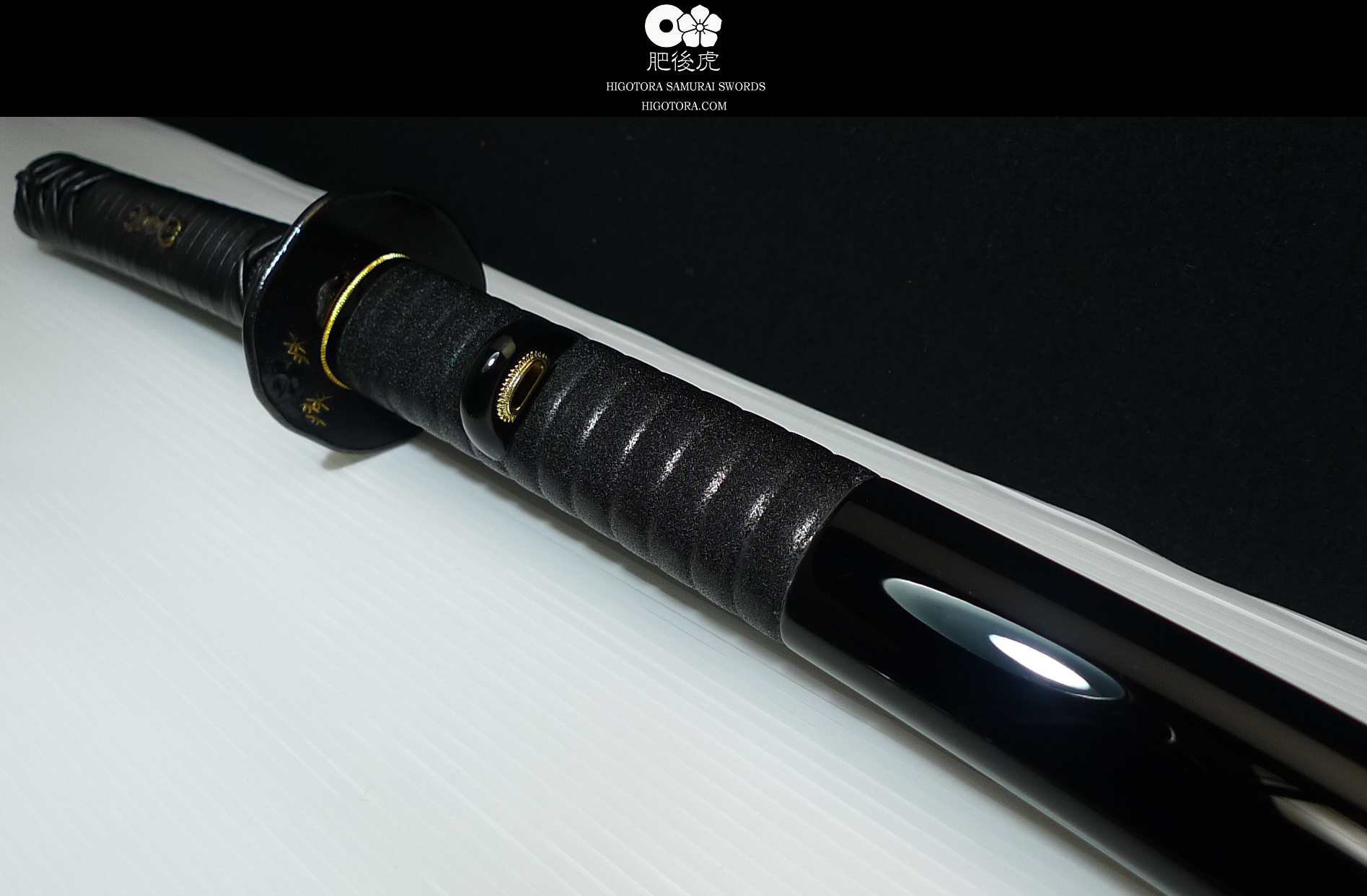 <真剣諸工作・革巻柄・乾漆黒石目/黒呂塗り分け鞘仕様>
