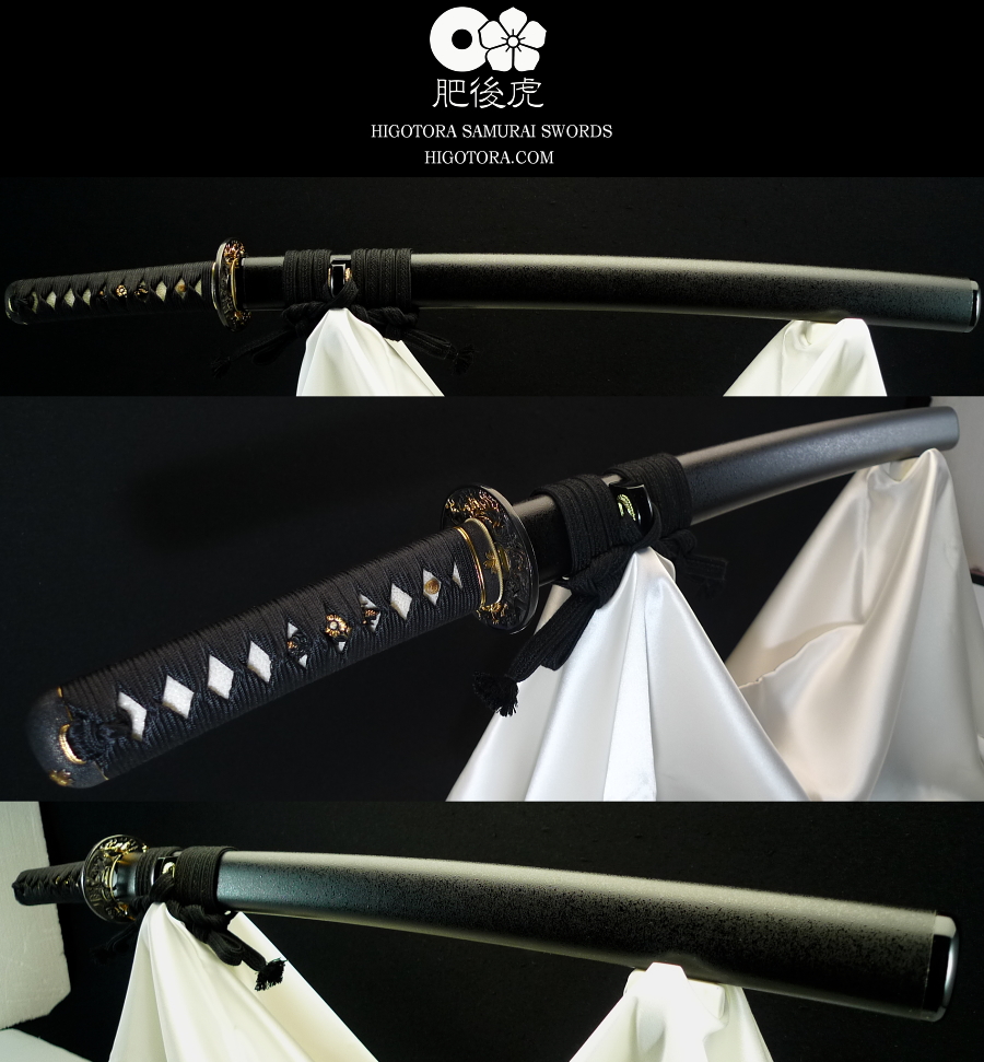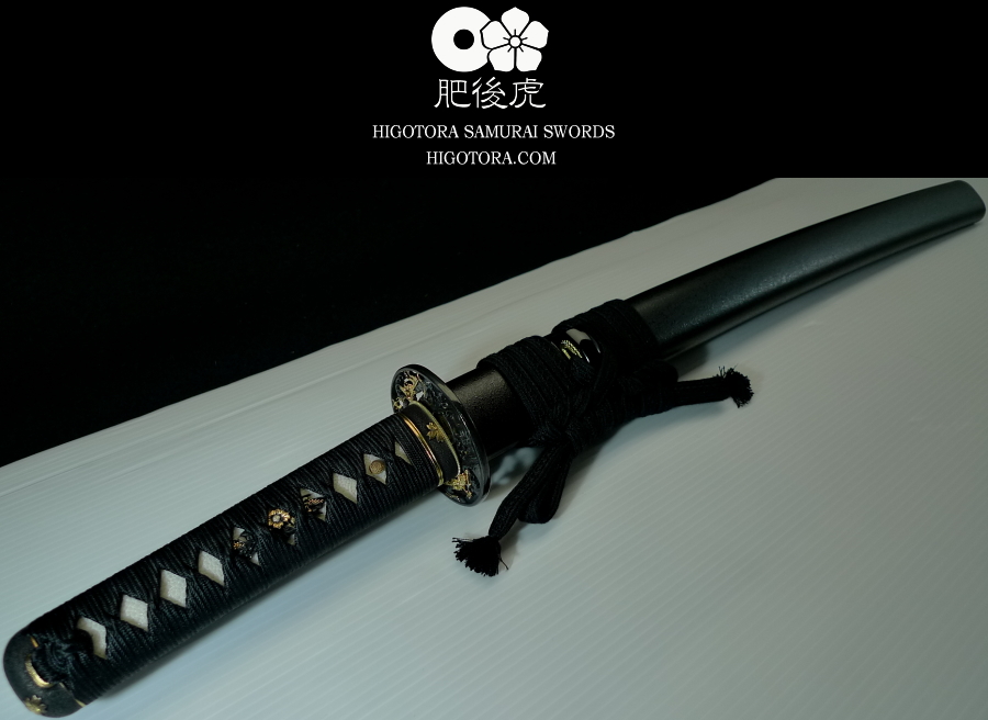 【1尺7寸・肥後虎同田貫脇差・黒金金具・正絹巻】