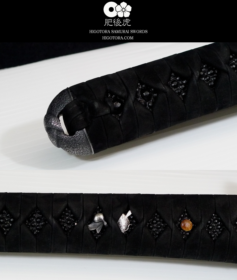 ■柄・鮫皮:黒塗り(現代漆)・親粒付・本鮫皮