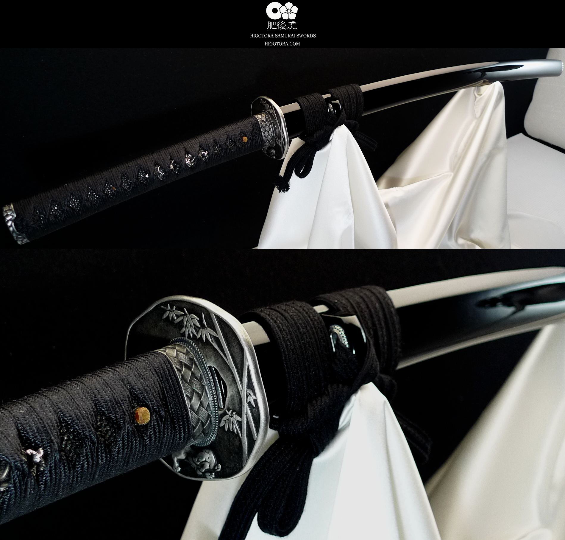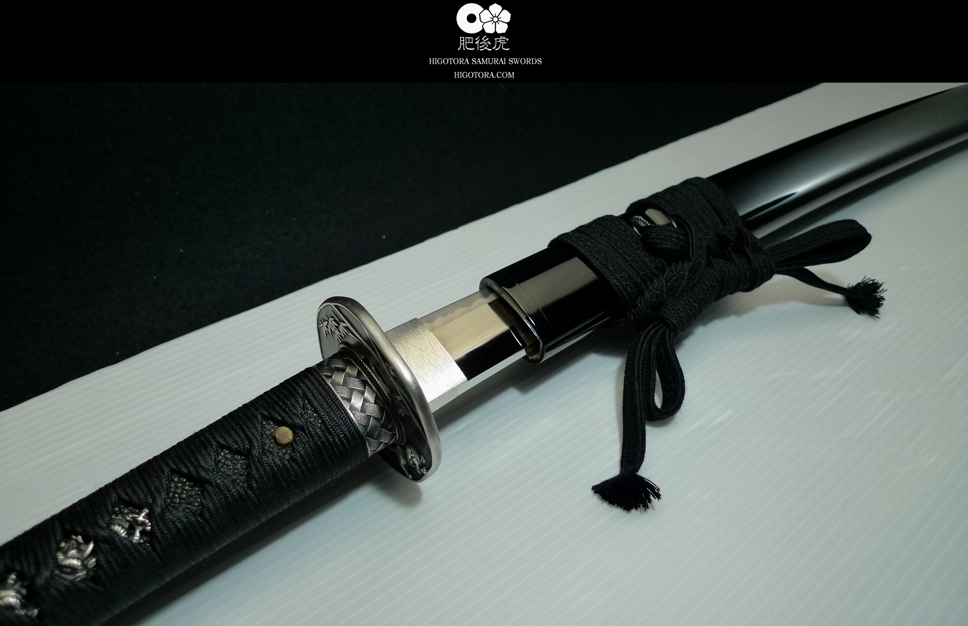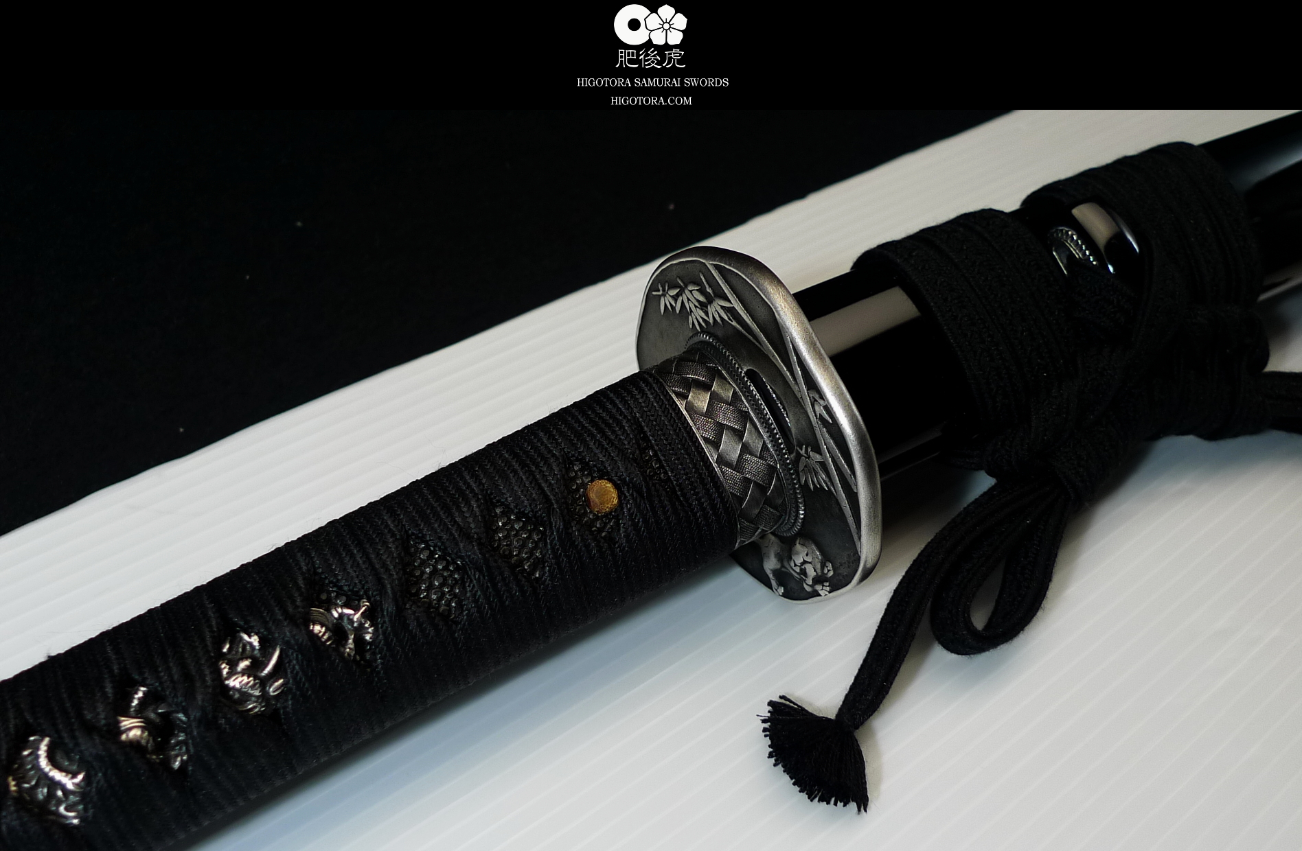 【フルオーダーメイド・模擬刀・肥後虎同田貫 2尺4寸5分 正絹 銀古美金具 黒蝋鞘】