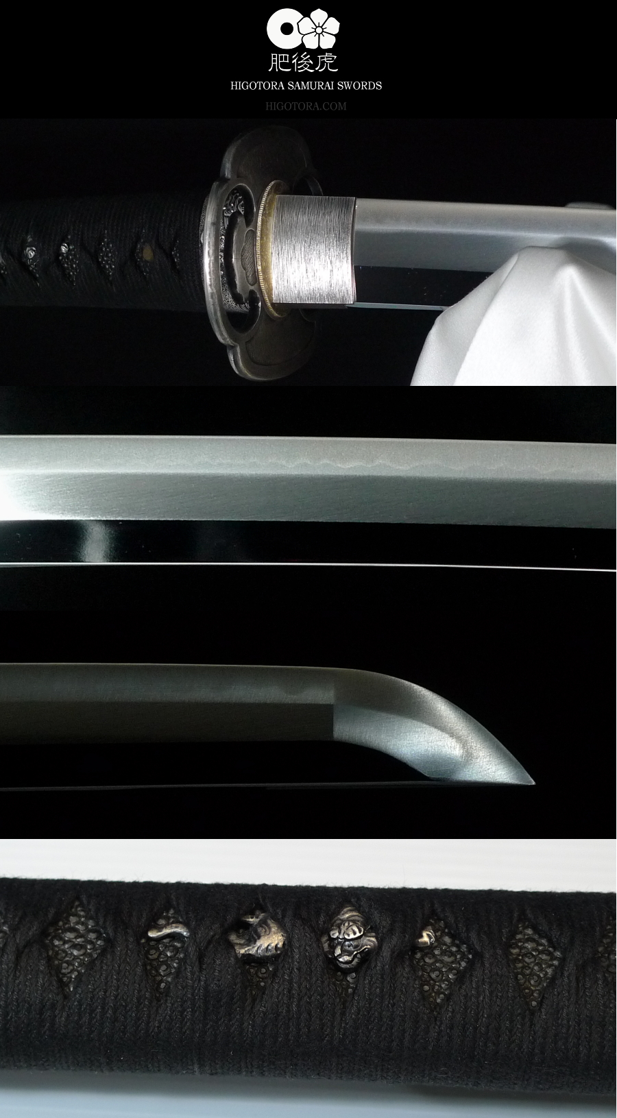 樋無し本鎬造・肥後虎同田貫刀身 / 直刃小乱刃紋 / 肥後鍔・銀古美 / 黒石目塗鞘