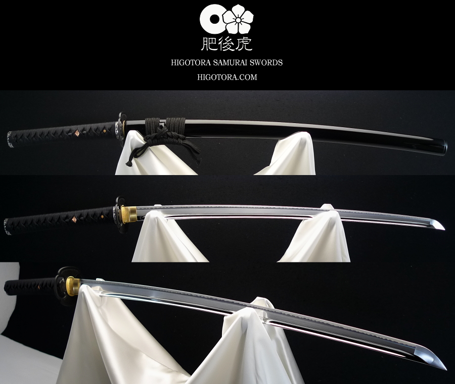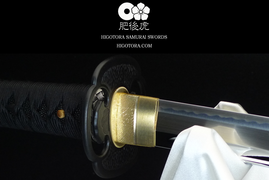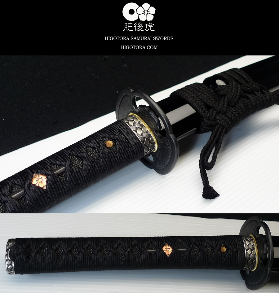樋入り・鎬造・肥後虎同田貫刀身ベース / 直刃小乱れ刃文 / 肥後鍔 / 柄糸:正絹・黒