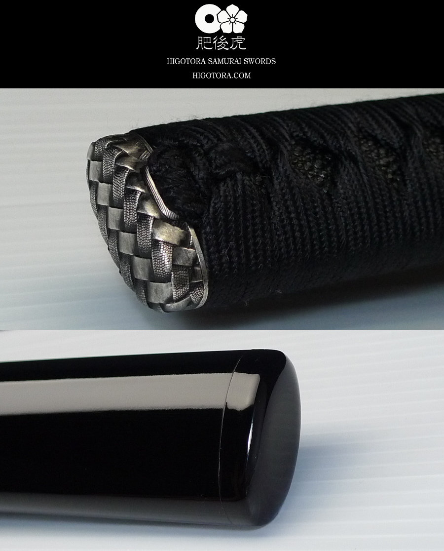 柄巻スタイル・捻り巻き / 本黒呂(黒蝋)ツヤ・重磨き塗り(真剣塗) / 網籠・銀古美