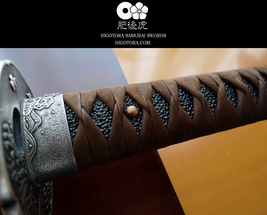 ■柄・鮫皮:親粒付(腹合着)一枚巻・黒塗り