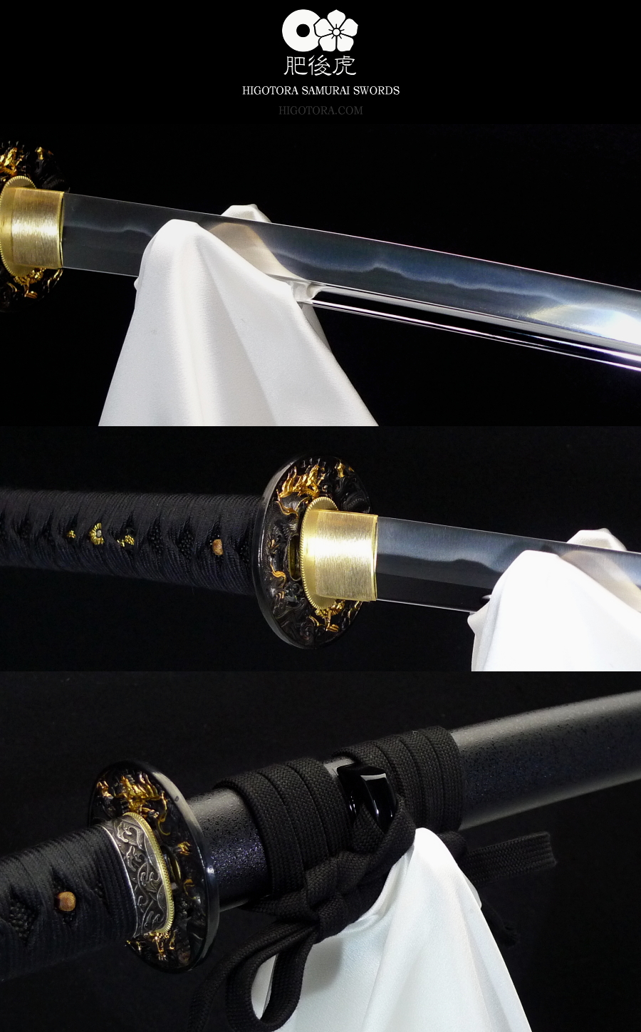 肥後虎標準刀身 / 指定刃文 / 龍透かし鍔 / 柄糸:正絹製・黒