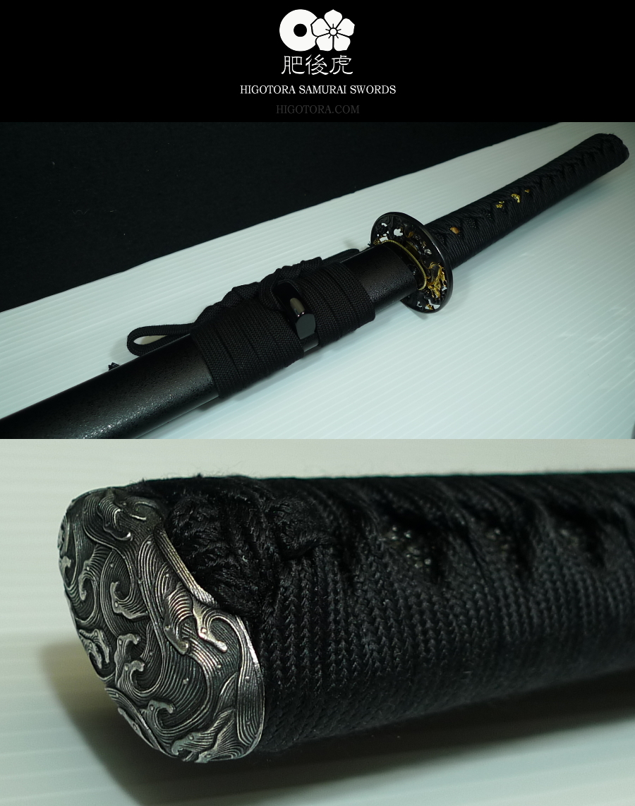 【フルオーダーメイド・模擬刀・肥後虎・2尺3寸5分・本黒石目塗り・肥後平波・銀古美金具】