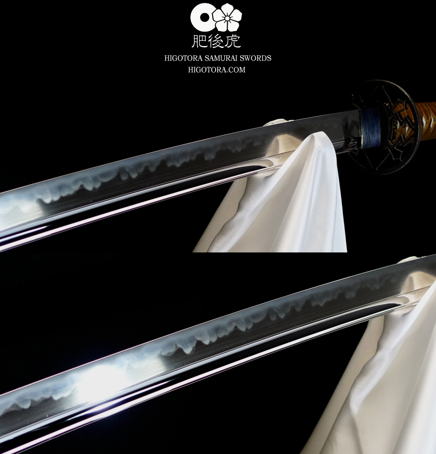 居合刀(模擬刀)製品一覧 ページへ戻る <模擬刀・製作例> 本職・研ぎ師 による 模擬刀・刃紋リメイク・刃紋付け直し 施工例 ※模擬刀への 『長船光忠写し刃文の再現』 と 『本煤竹目釘の製作』 を行いました。 <※画像を CLICK していただくと、より大きな画像をご覧いただけます> 居合刀(模擬刀)製品一覧 ページへ戻る