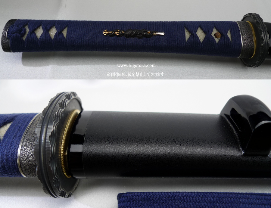 柄・本鮫皮 / 柄糸・純綿制・紺(一貫巻き) / 柄長8寸5分