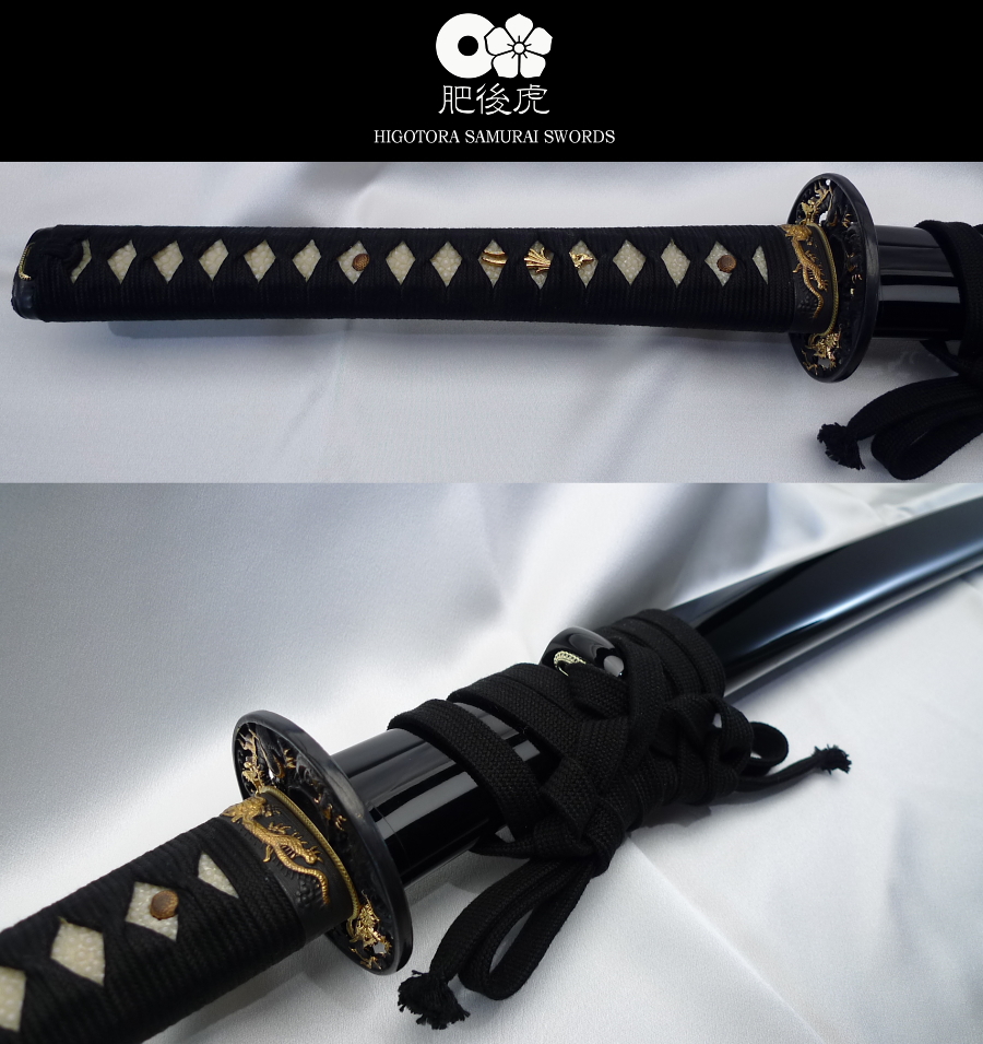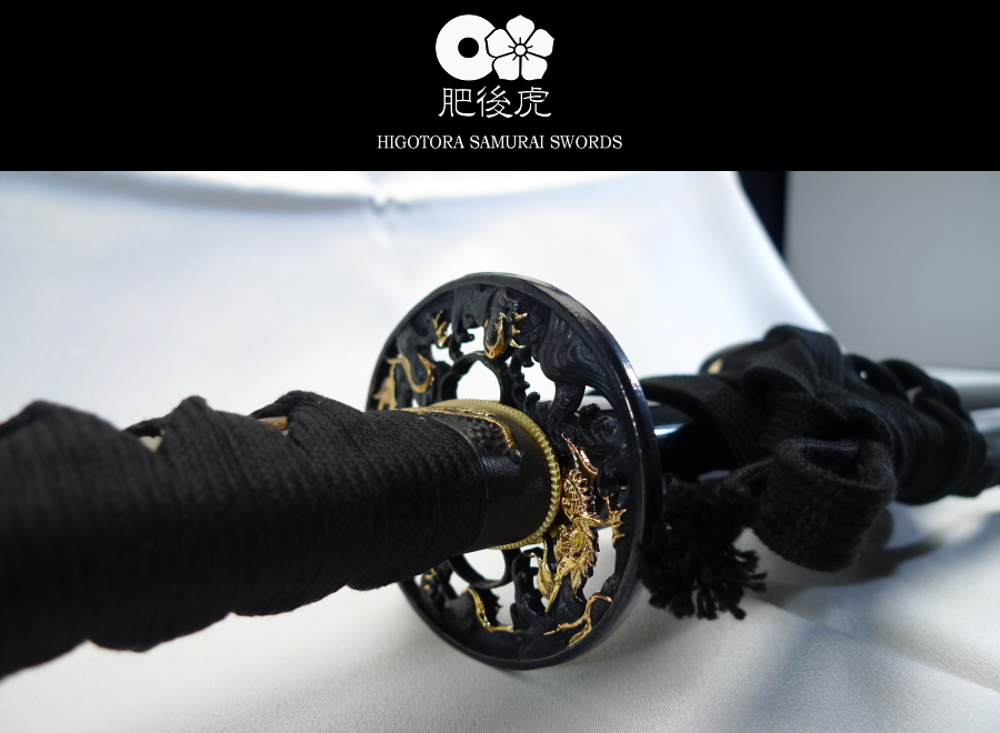 【2尺5寸 肥後虎 オーダーメイド同田貫 龍金具・龍透かし鍔・本黒呂(黒蝋)塗鞘】