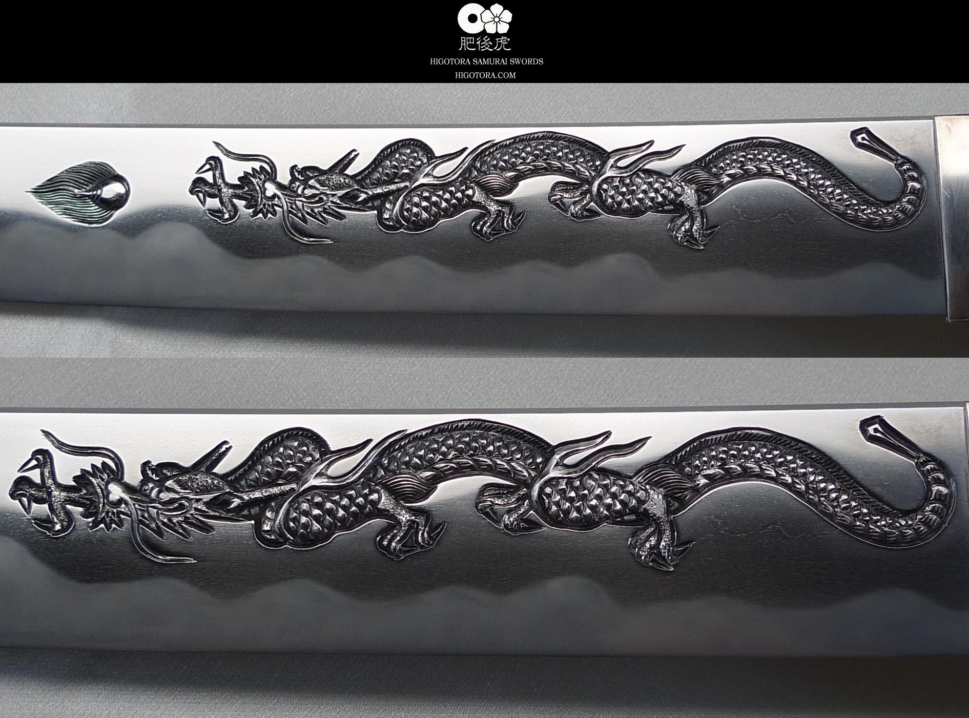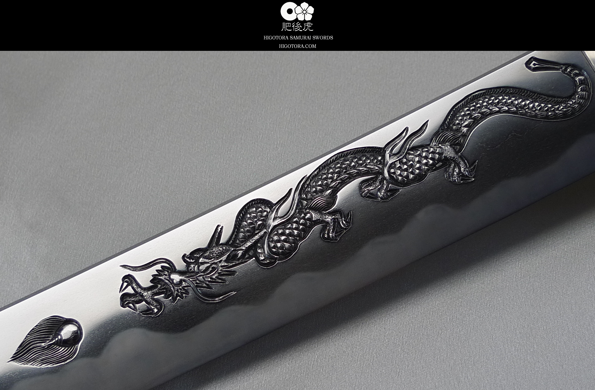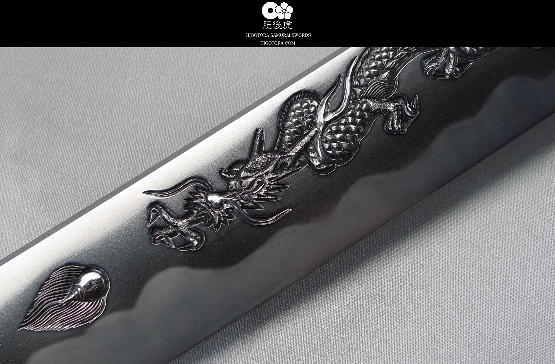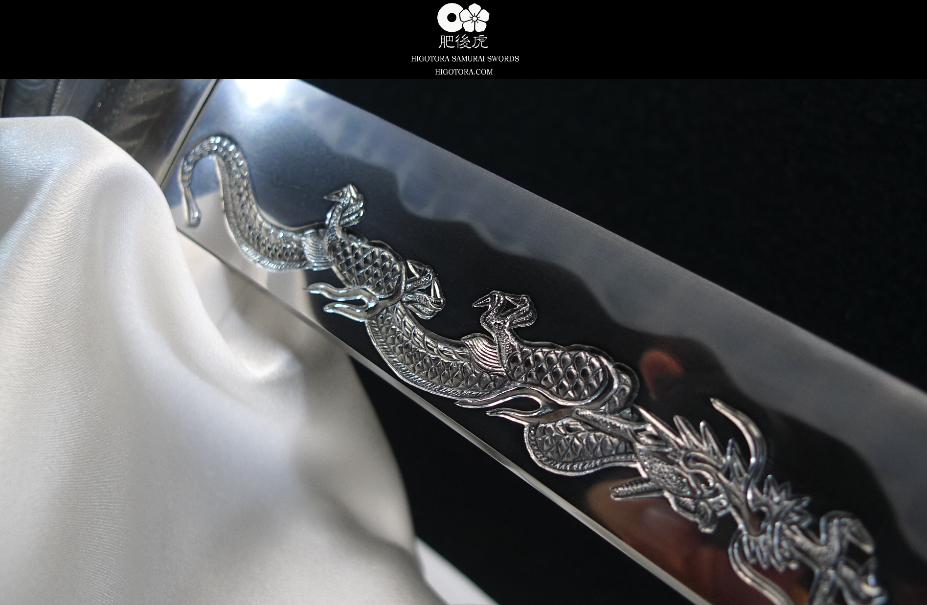 ・刀身彫刻:玉追い昇り大龍図、梵字、護摩箸 蓮台