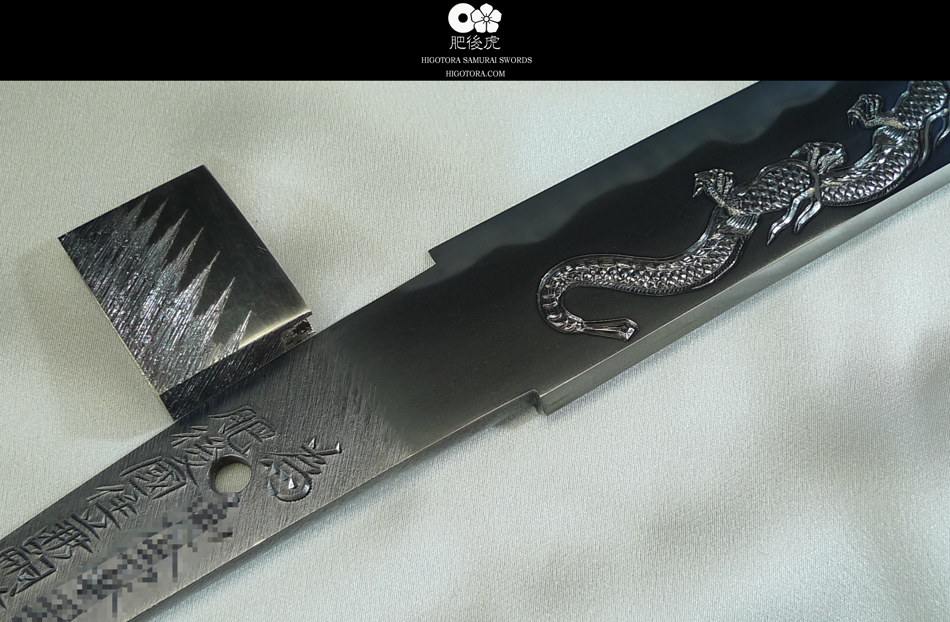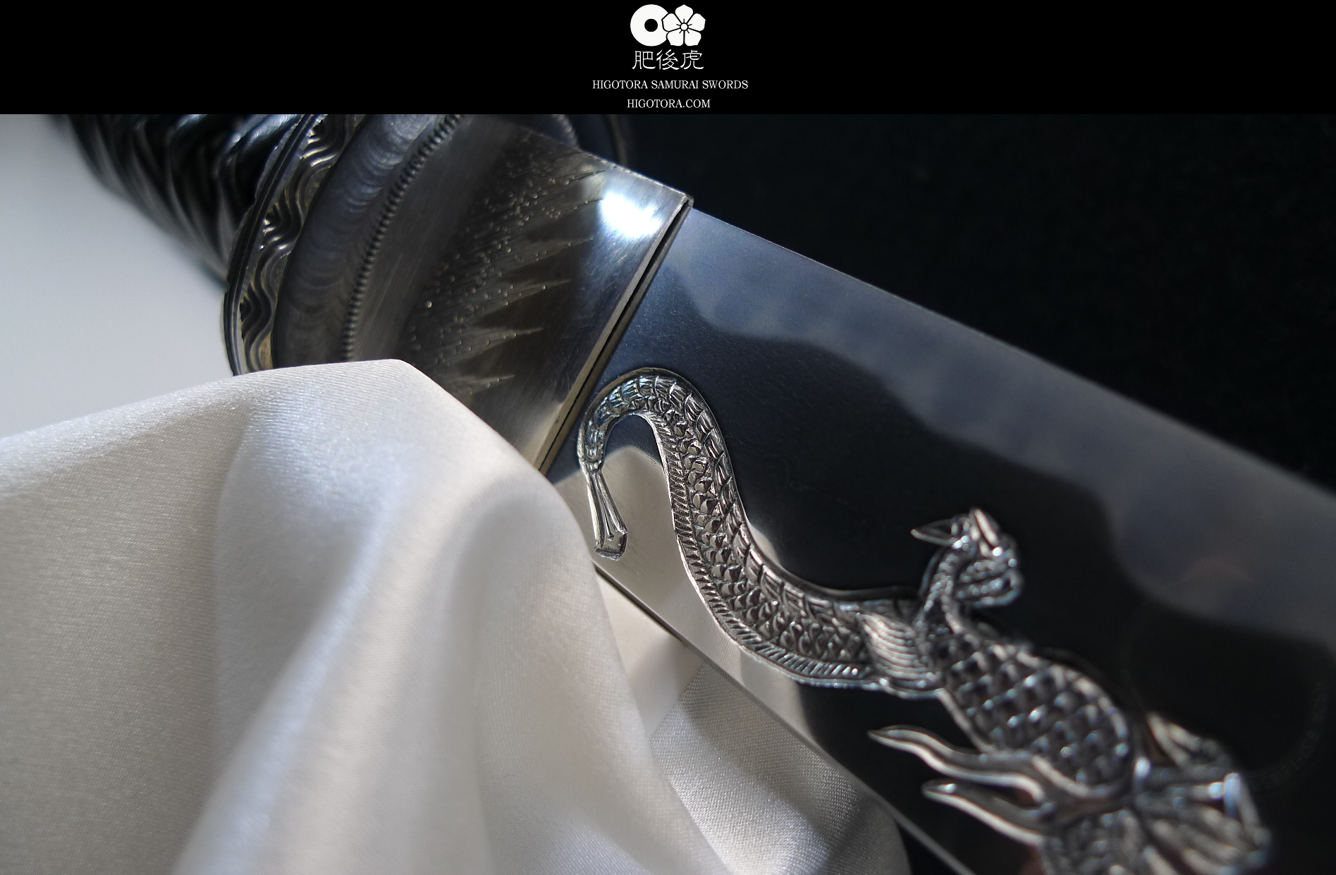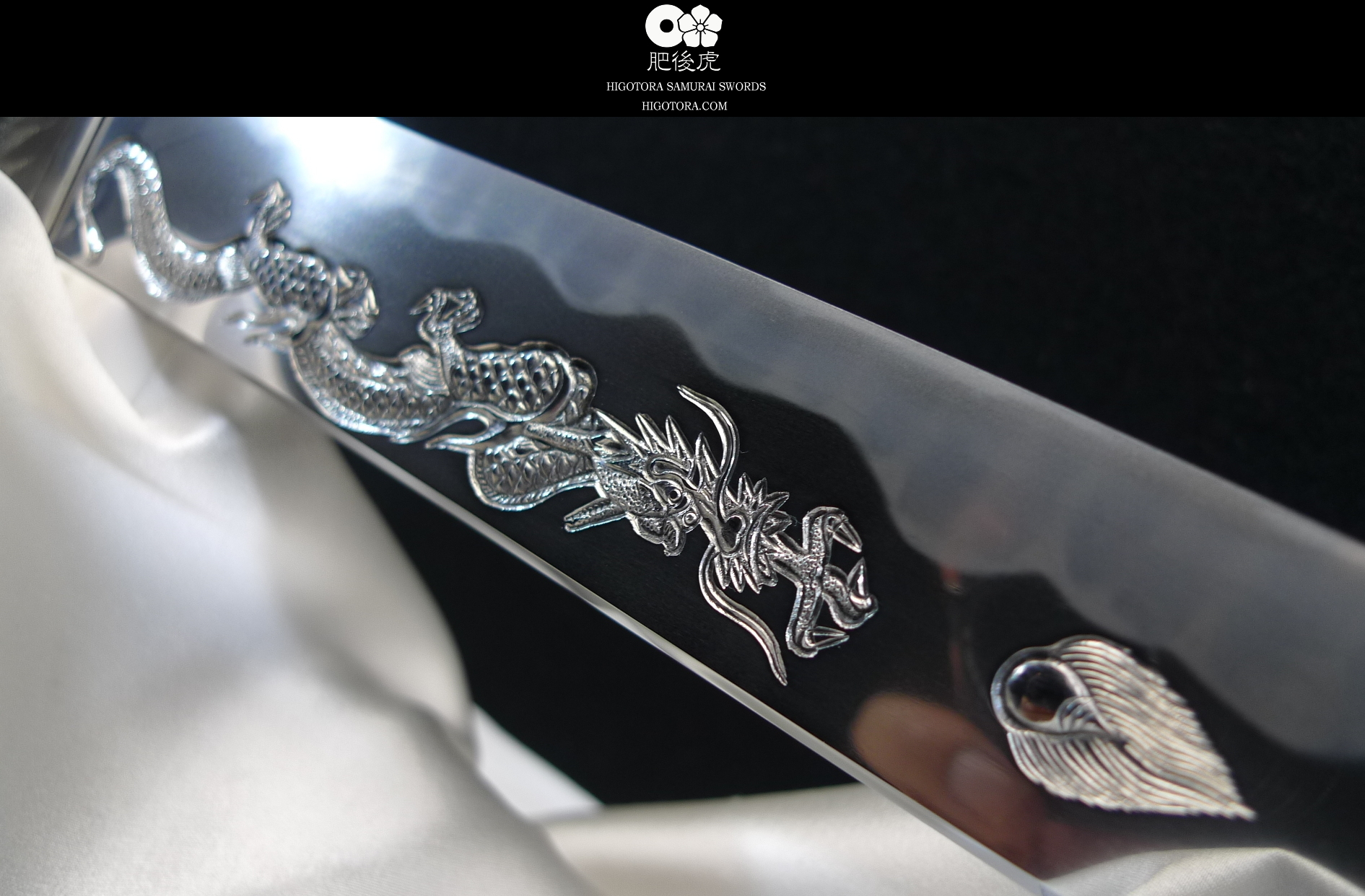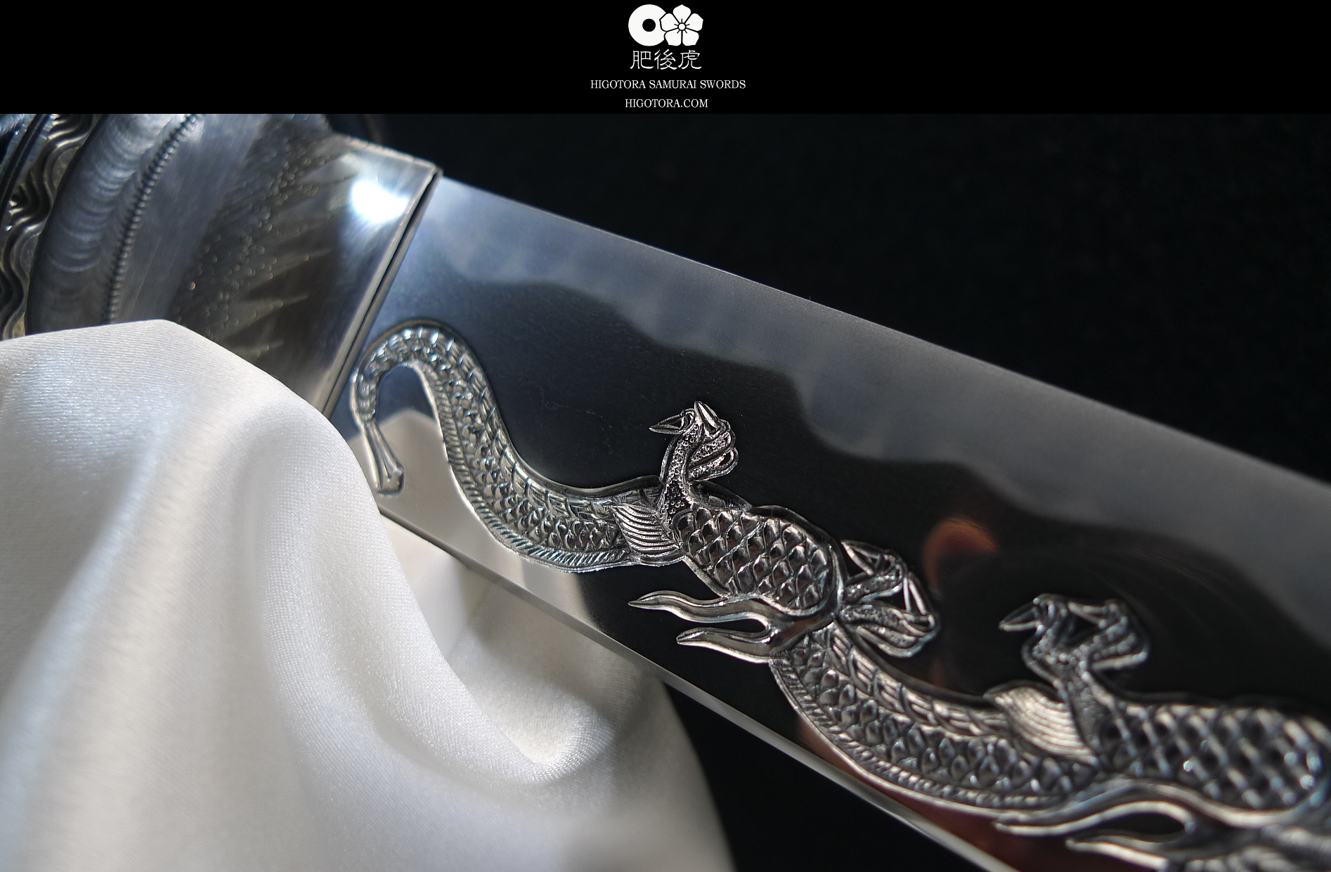 ・刀身彫刻:玉追い昇り大龍図、梵字、護摩箸 蓮台