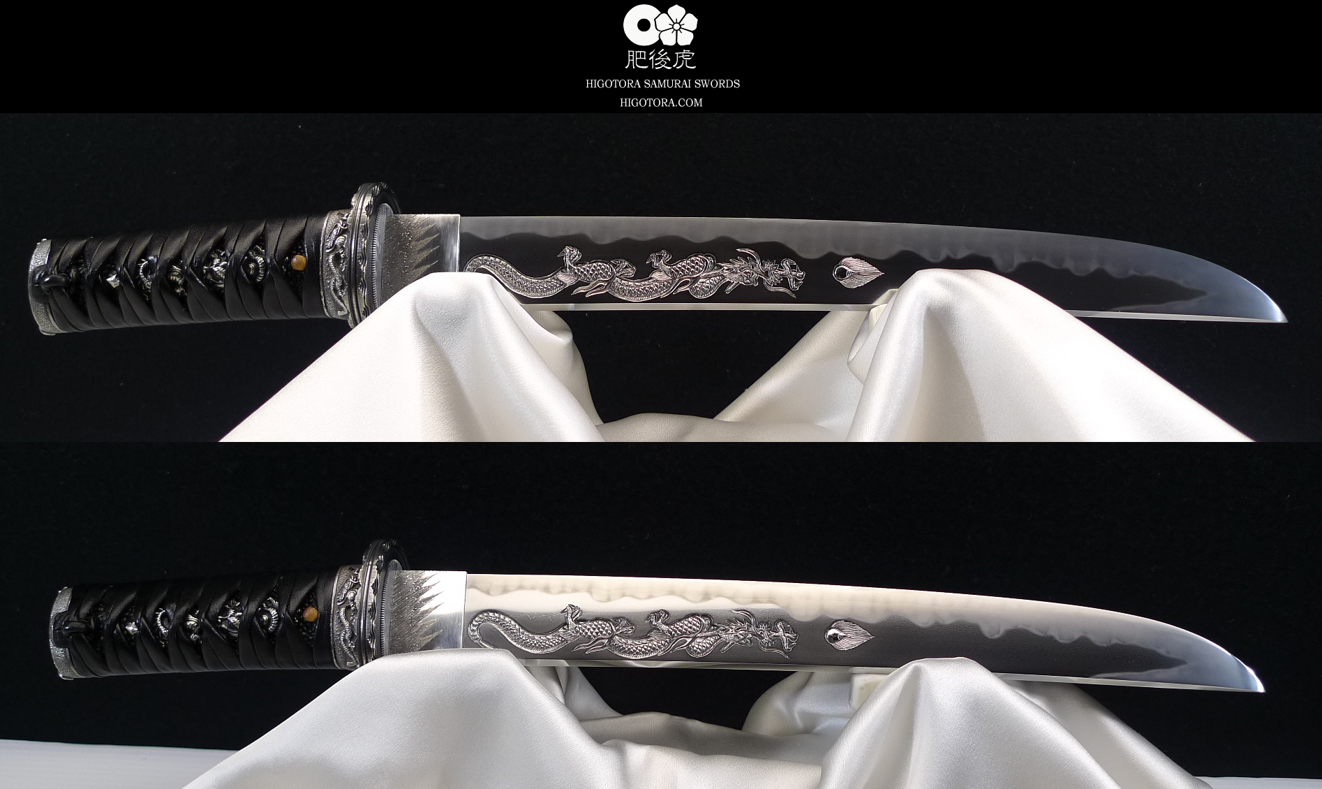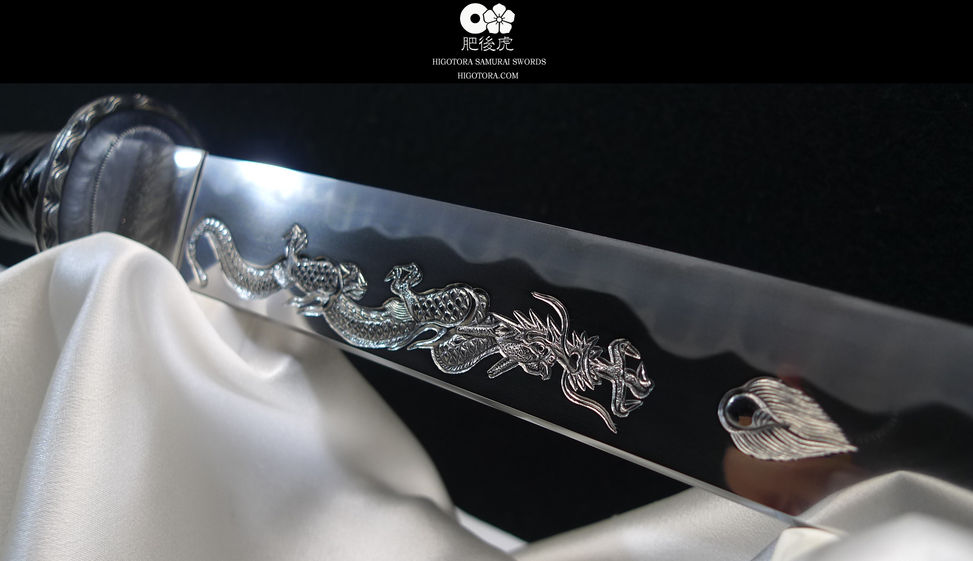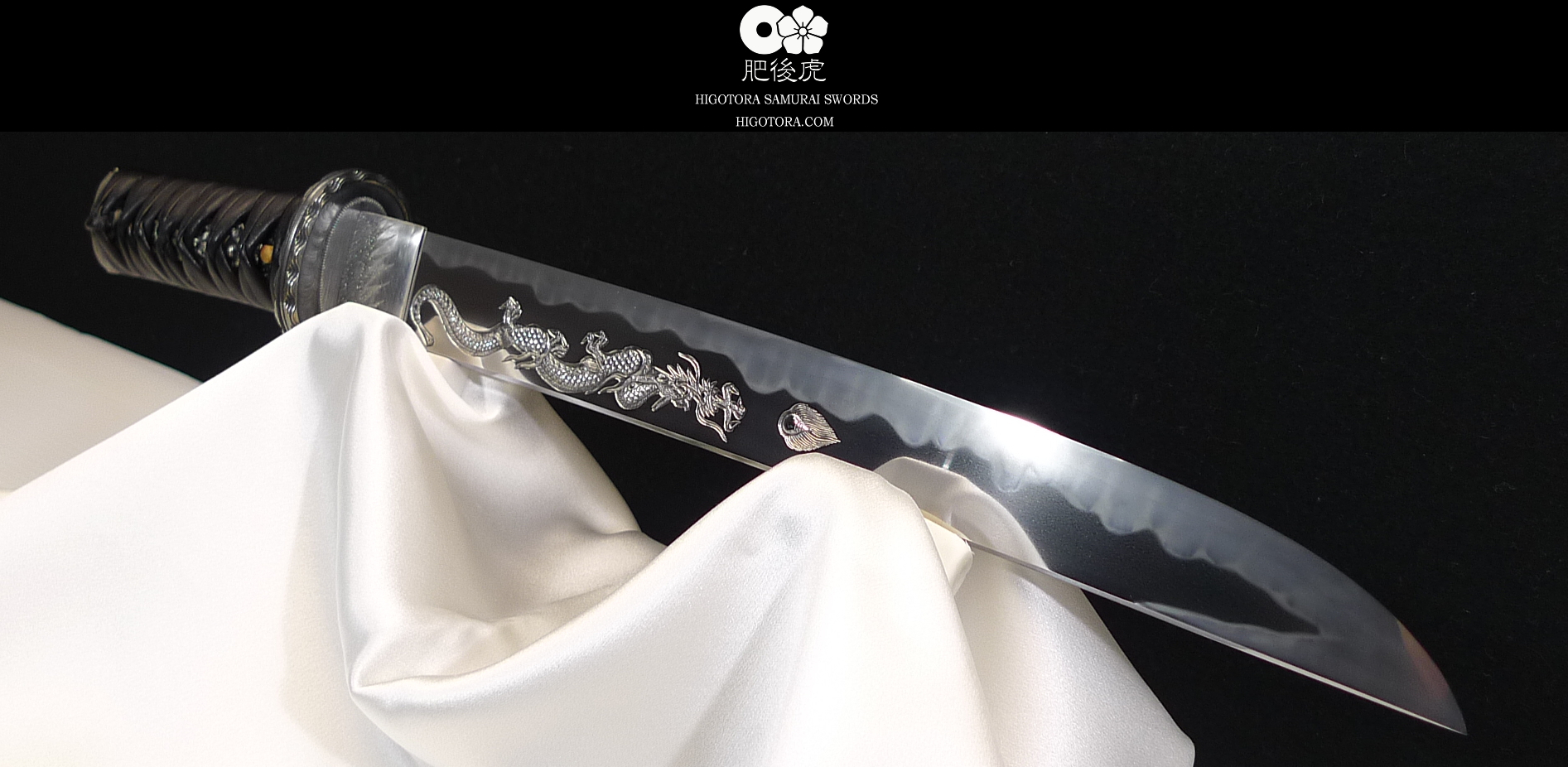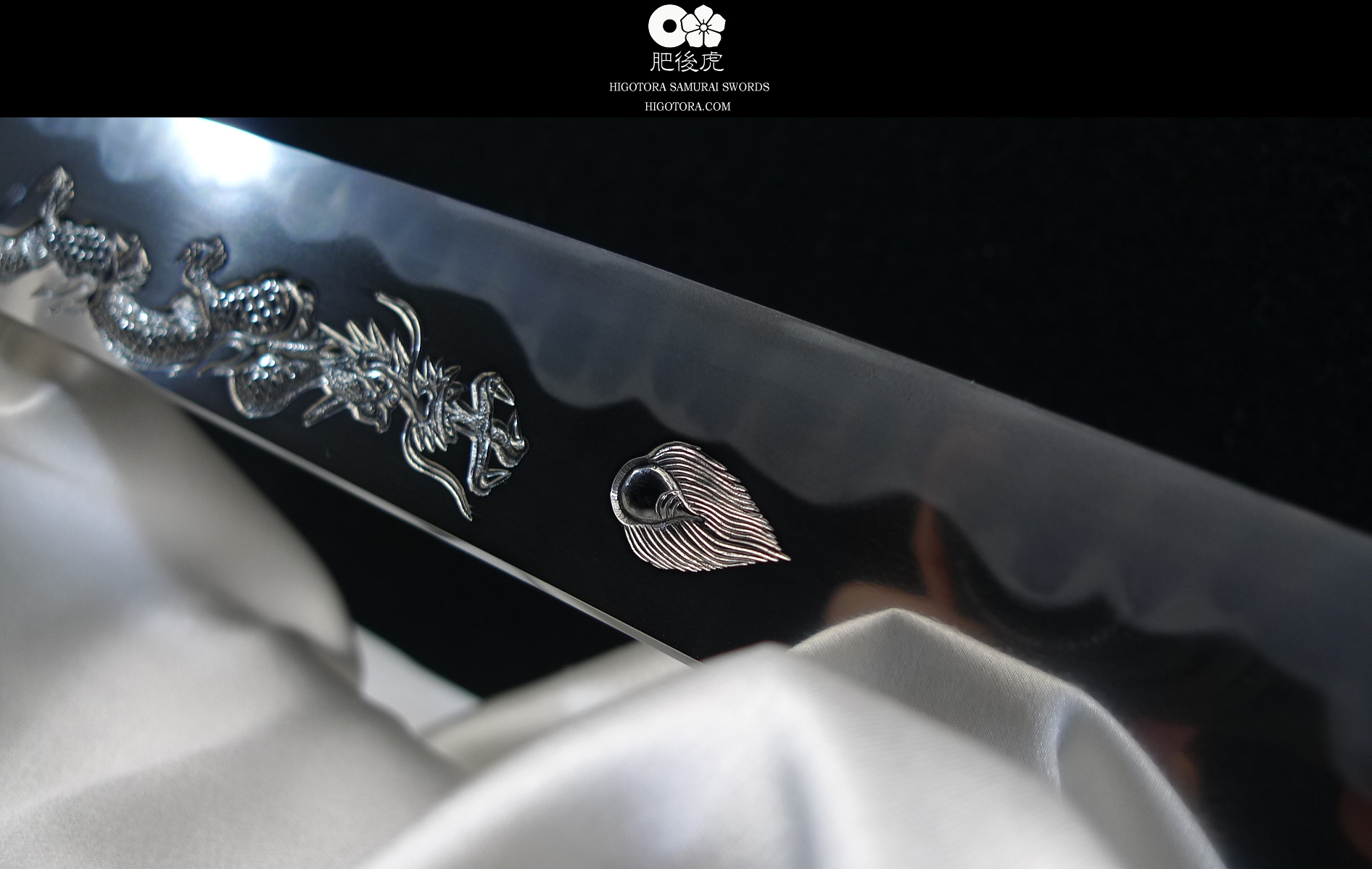 ・刀身彫刻:玉追い昇り大龍図、梵字、護摩箸 蓮台
