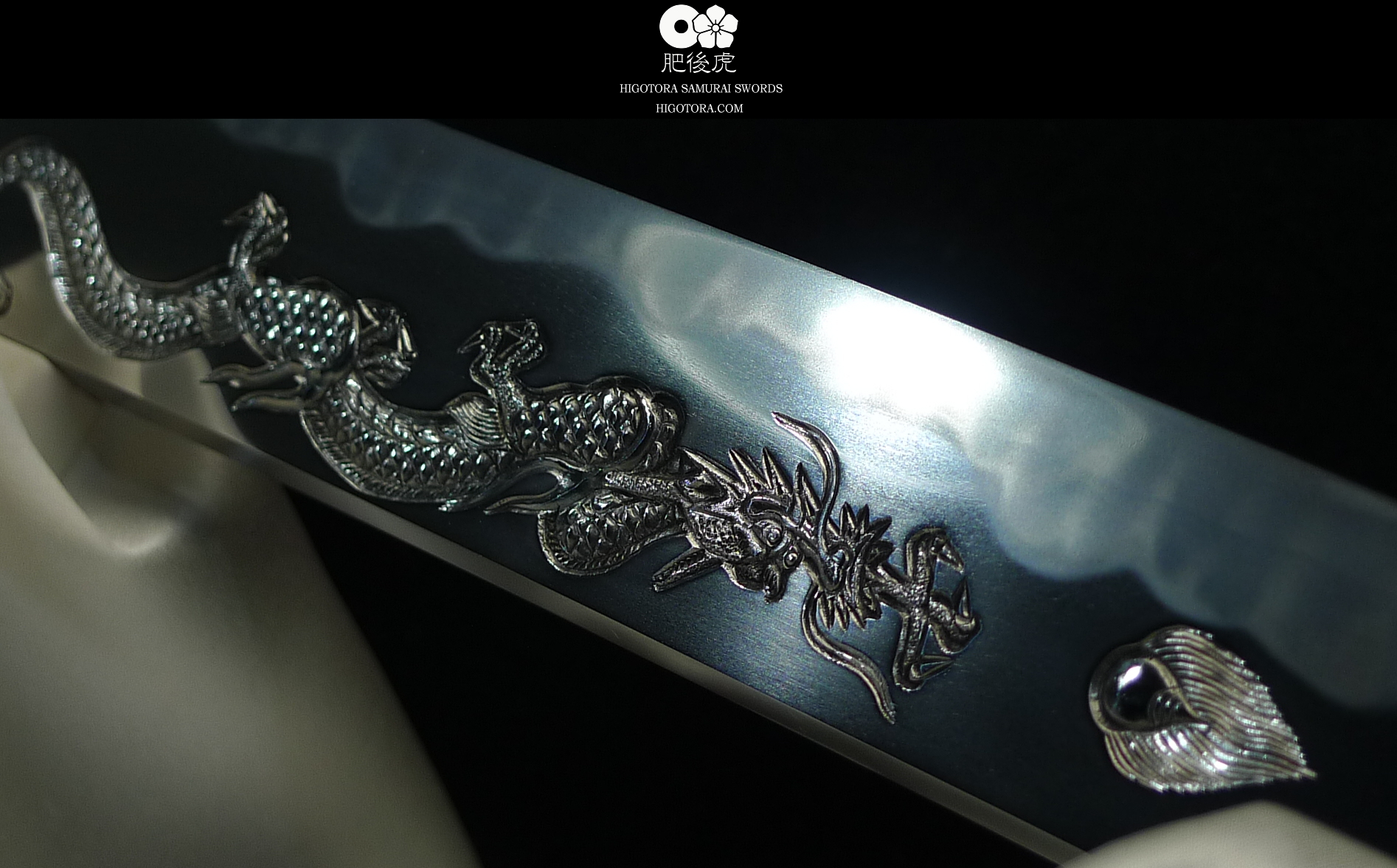 ■縁頭金具:名工作・高彫大龍・銀燻し(銀無垢製)